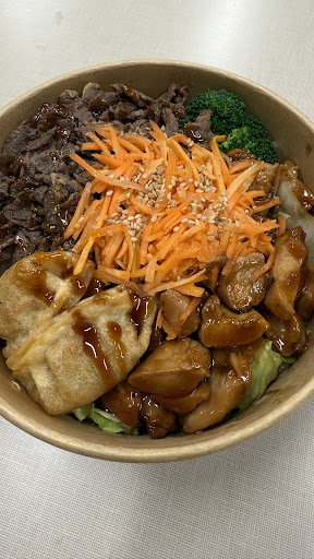 Found Cupbop on my way to grab a sub for dinner. Walked in and the restaurant has a bright, clean, comfortable seating area (maybe holds 25ish). There is a walk-up counter for ordering. The lady at the register was eager to help when I asked for suggestions. Food can be ordered plain, medium or spicy. Choices of many combos of shrimp, chicken, beef, pork, tofu. I had the beef and pork combo. You get a generous bowl served with protein on top of lettuce, noodles and rice. Two fried dumplings (pot-sticker) and some broccoli are also part of the bowl. Each cupbop bowl order is given a choice of canned soda, seltzer or a water bottle. The menu also offers udon and ramen, likely more interesting for kids looking for noodles. The food was dropped off to my table in 5ish minutes. No doubt, Cupbop Jangin is as likely to be preparing meals for carry out at least as often as for eat-in. If you're in the mood for a flavorful meal, give Cupbop a try-- I suspect you'll be as pleasantly surprised as I was. The dine-in area is not fancy and would be welcoming to families with children. There is plenty of room between tables and uncarpeted flooring will accommodate anyone who is mobility challenged. Chairs and cushioned bench seating are the choices. Great new place and a solid value with substantial entrees...