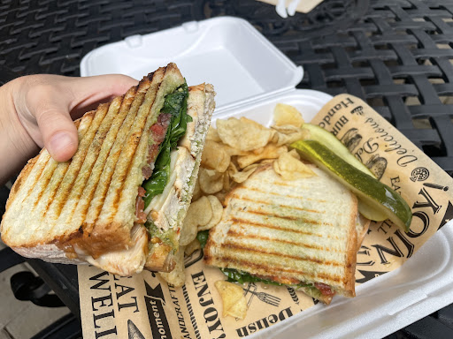 My parents and I were looking for a place eat in Northfield after driving an hour to pick up the ashes of our dog who passed two weeks ago from blood cancer. Found this place two minutes from the pet hospital located in an office building. Owner was super chill made our food fresh and was super generous. They had these cookies by the register I think the owners baked themselves they all looked really good we got one of each (pecan, cookies and cream, m&m, and this one with caramel on top) and the owner gave us two for free and chips with our meals and reheated my dad’s soup when asked (dad’s picky) to be super hot (dad was happy). We took our food to go and ate right outside the office building by this little fountain which I think is the way to go if the weather accommodates it. I got the chicken pesto panini I don’t even like pesto but I liked this panini the bread was crisp the cheese melty and the vegetables happy (not soggy). Honestly the cookies I enjoyed the most; cookies and cream was really good it had like these big chunks of white chocolate which were awesome but the best was the caramel one CRAZY GOOD definitely get one. Anyways I miss my dog love you Beowulf...