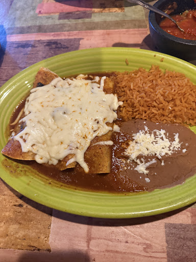 As for the food, the salsa wasn’t my favorite—it was okay but didn’t really wow me. I ordered the spicy sauce enchiladas, and let me tell you, if you love spice, these are for you. I thought I enjoyed spicy food, but this was on another level. Thankfully, the sour cream helped mellow it out a bit. My friend got the plain red sauce enchiladas, and she liked them, but we both agreed the sauces overall weren’t the best.