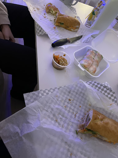 Let talk about the food. I was expecting a lot from this place due to the reviews and photos. The spring rolls were amazing, I would recommend that to anyone (as long as you do not have a peanut allergy). The peanut sauce was very good and the shrimp tasted fresh 9/10. The Banh Mion the other hand was very Meh. We ordered both the Saigon and the Pork Belly, both tasted exactly the same. The only difference was that the Saigon had a different consistency in texture due to the ham. I took this to go and asked for sauce before leaving and the lady said “there’s already sauce on the sandwiches”. I didn’t think there was an adequate amount on either sandwich (if any).