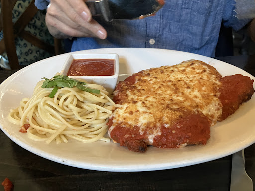 Our server was present earlier in the evening but then vanished about 5 minutes after our guests arrived. After sitting for thirty minutes and no one came by to offer drinks or take our order; we asked the hostess if she could find our server. We watched her walk all over the restaurant and then even disappear into their outdoor area. Ten minutes later, our server miraculously resurfaced ad helped two other tables before attending to us. She took our orders, replenished drinks, and promptly disappeared again. We never saw her again. We think the front-of-house manager then helped us the remainder of the evening. One person ordered pizza well done (meaning crispier crust) it came out floppy and soggy. He sent it back stating he wanted it well done. It again came out wet and floppy. We asked our newish server what the issue was and he said that all their pizza is 50% wet and floppy. It was inedible - it would have been nice if our original server mentioned this when he originally asked for it to be well done. My wife and his wife shared the chicken piccata. His wife had potatoes on the side and my wife opted w pasta on the side. I also got the chicken piccata with potatoes. Our food finally arrived and the chicken was flavorless and barely room temperature. The potatoes were well done and piping hot. My wife’s pasta was cold. I think the newer waiter/manager knew that our original server forgot to bring out our food, but nothing was done. We didn’t complain, but the restaurant didn’t adjust our bill either. We’re never going back. So they lost two people who dined with them at least once and month and list a pair of potential new customers as well.