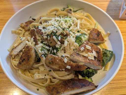 The Differences: The silverware and napkins are located over by the soda fountain, not wrapped up and brought with your food. The serving sizes have been reduced I THINK. There used to be three bowl sizes: small, regular, large. Well there isn't a large bowl anymore, just small and regular; and I can't tell if the new small is the old regular, it may have stayed the same. But I also can't tell if the new regular is the old large, or also just the same. Either way, I was dissatisfied with the serving size. The food quality has dropped. I ordered a Pesto-Cavatappi with extra mushrooms and I squeezed a boatload of lemon juice on it, like I always used to. Didn't taste the same. I ended up adding some OFFBRAND SRIRACHA because that's what they have now. My girlfriend ordered the Steak Stroganof, it was alright. My now-vegetarian friend ordered a Pad Thai and was dissatisfied off the bat. He stated, "Definitely not worth the 10 bucks." He ate three quarters and took the rest home. I don't know if he ever ate it, maybe his family did.