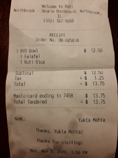 During my last visit, my server was especially attentive and engaging. Little did I know that I was talking to Roti's culinary director, Layla. She is responsible for the menu in all of their restaurants.