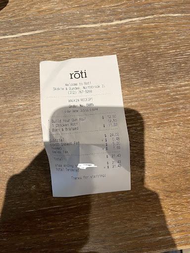 Read moreGeneral Manager Sergio and Team Member Manuel go above and beyond, providing excellent service, with a great attitude. I’m not talking scripted corporate nonsense. I mean genuine human warmth, actual care, and old-fashioned taking pride in one’s work. These guys are dialed in to a good oscillatory frequency! My wife and I had stopped going to Roti a long time ago, even though we liked the food, as the quality of the service, over time, had gone from, er, uh...not-so-great...to completely checked out. Quality of the product had steadily eroded, too, becoming very inconsistent, with a rotating roster of items out of stock on any given day. We assumed they were going under. Updating to late 2024, early 2025, we found ourselves noting with surprise the fact they were still in business. So, it was more out of curiosity than actual hopes of a satisfying meal that we decided to roll the dice one day. That’s when we walked into the new Roti under Sergio and Manuel. Been going back about once a week ever since. What a turnaround! Can’t say enough about these guys and the job they’re doing! Oh, and bang for the buck - delicious (!) and nutritious, at a surprisingly low price. Highly...