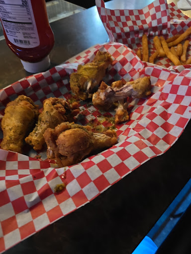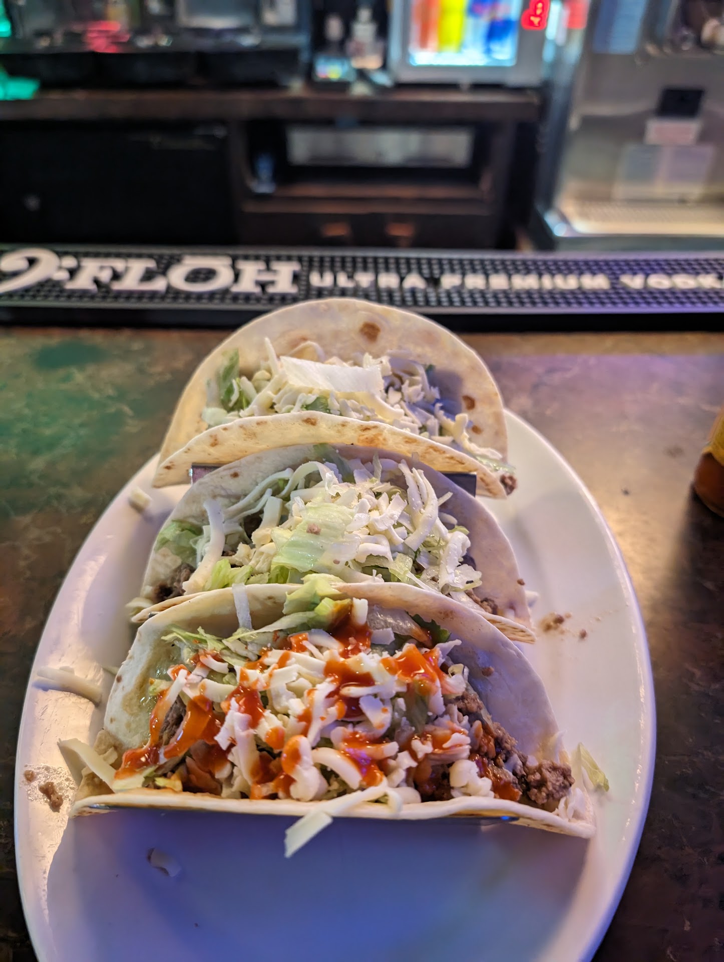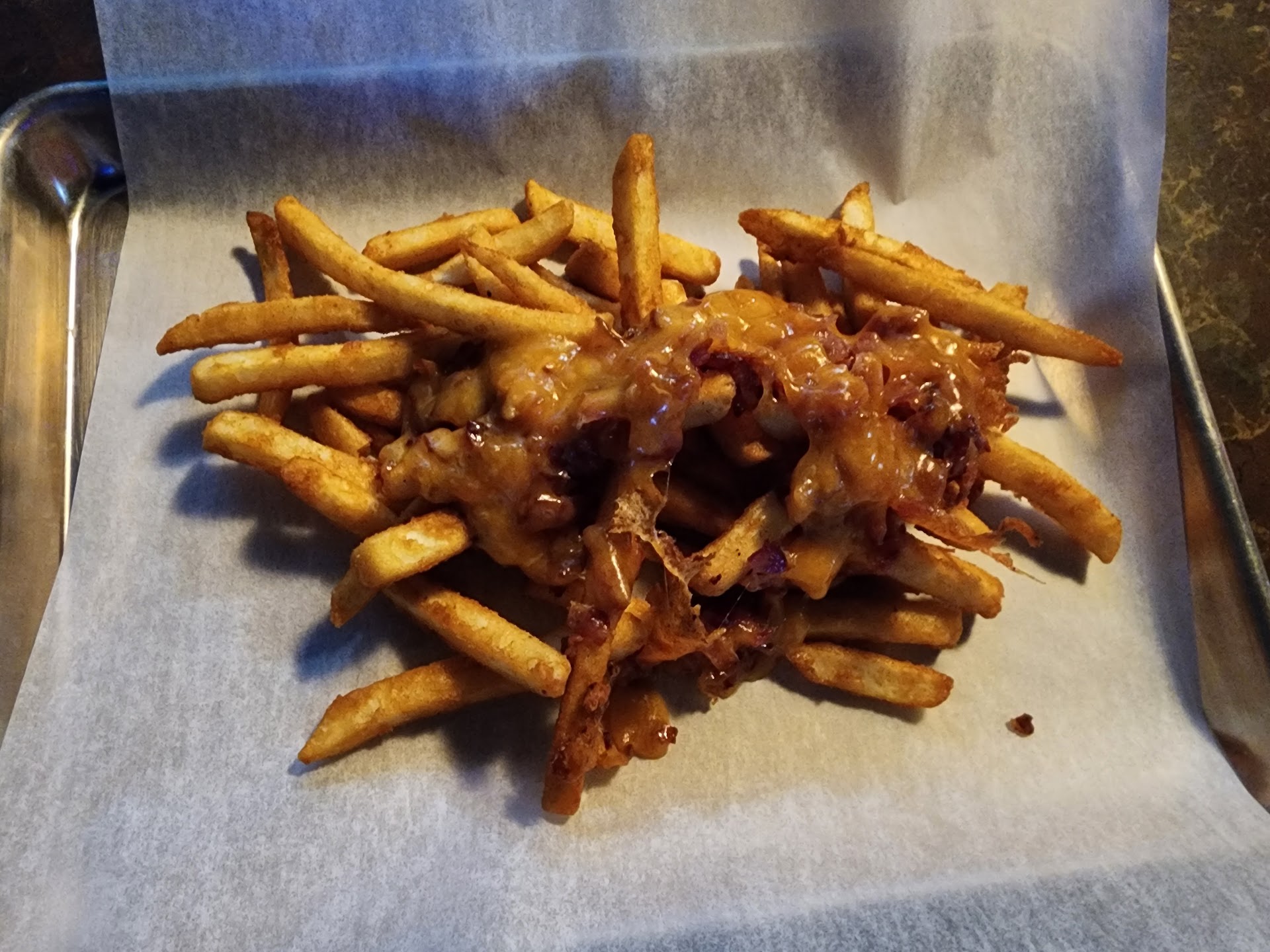 We got the bacon cheese fries and the bacon was real bacon, not little bits, and the fries were delicious! I got the ground beef taco special of the day for $5. Hubby got the Carolina Gold wings and they were delicious. Service was good but we sat right at the bar so we could grab their attention as needed.