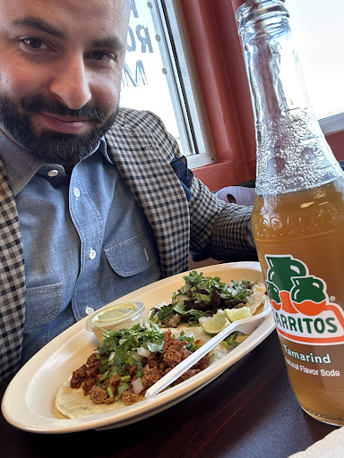 I always get two tacosāone chorizo, one steakāand every time, they blow me away. Whatever that green sauce is⦠I donāt know whatās in it, but itās creamy, itās perfect, and I want to put it on everything. And every visit, I grab a Jarritos Tamarind sodaāthe only soda I ever drink. Itās my little treat because I donāt drink soda at home, but in a Mexican joint like this, it just feels right.