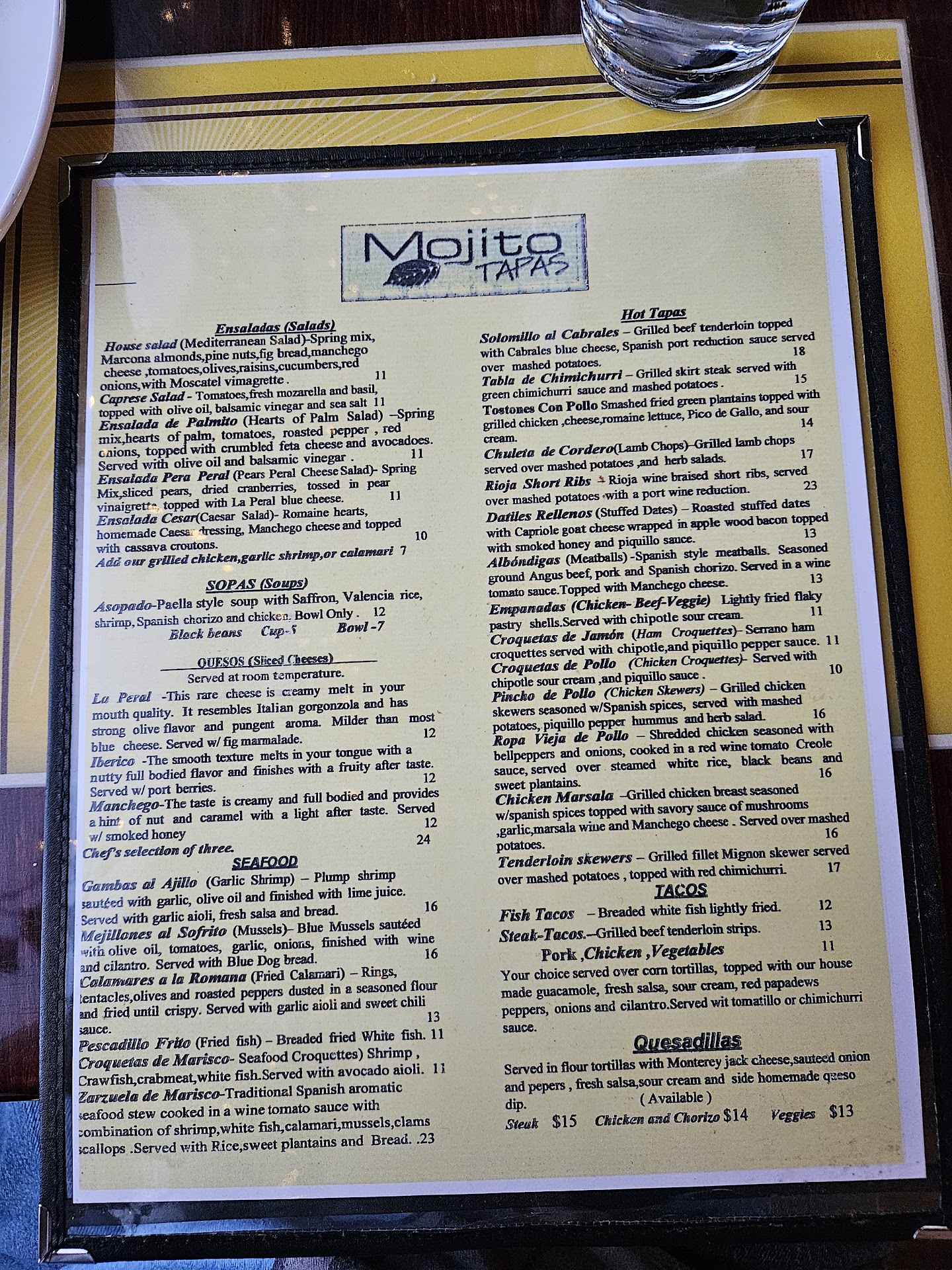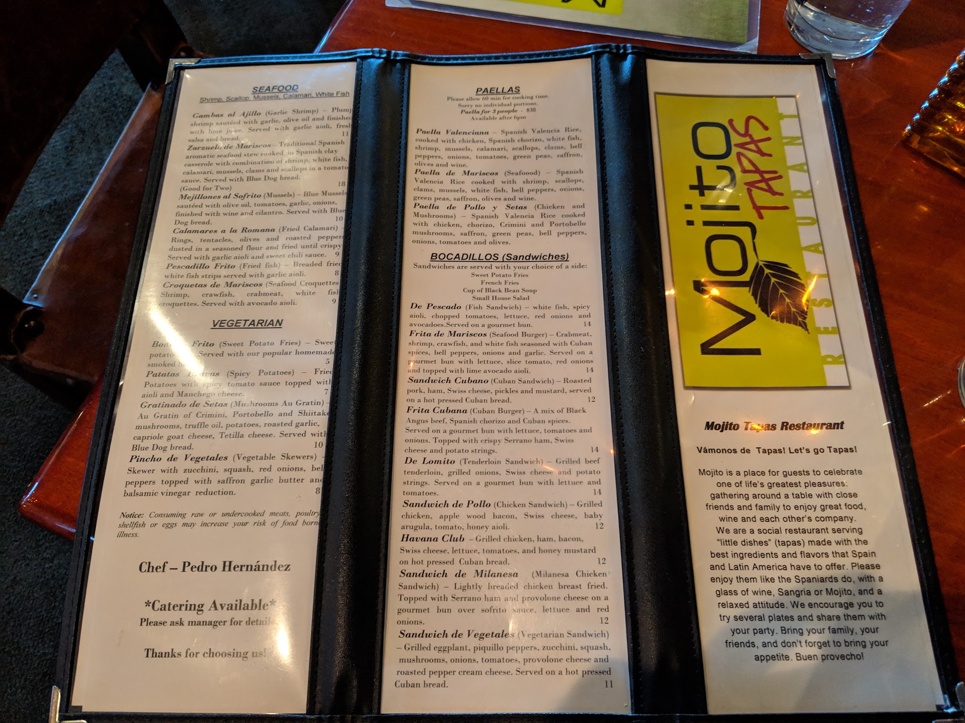 Anyway, one of my tapas plates was incorrect (steak skewer instead of chicken)--but the waiter never came back for a customary check on how are food was. The mojito I ordered barely had any alcohol in it either--which was strange because in my past visits they had been fairly strong. I would have loved to address this with the server, but again he was nowhere to be found.