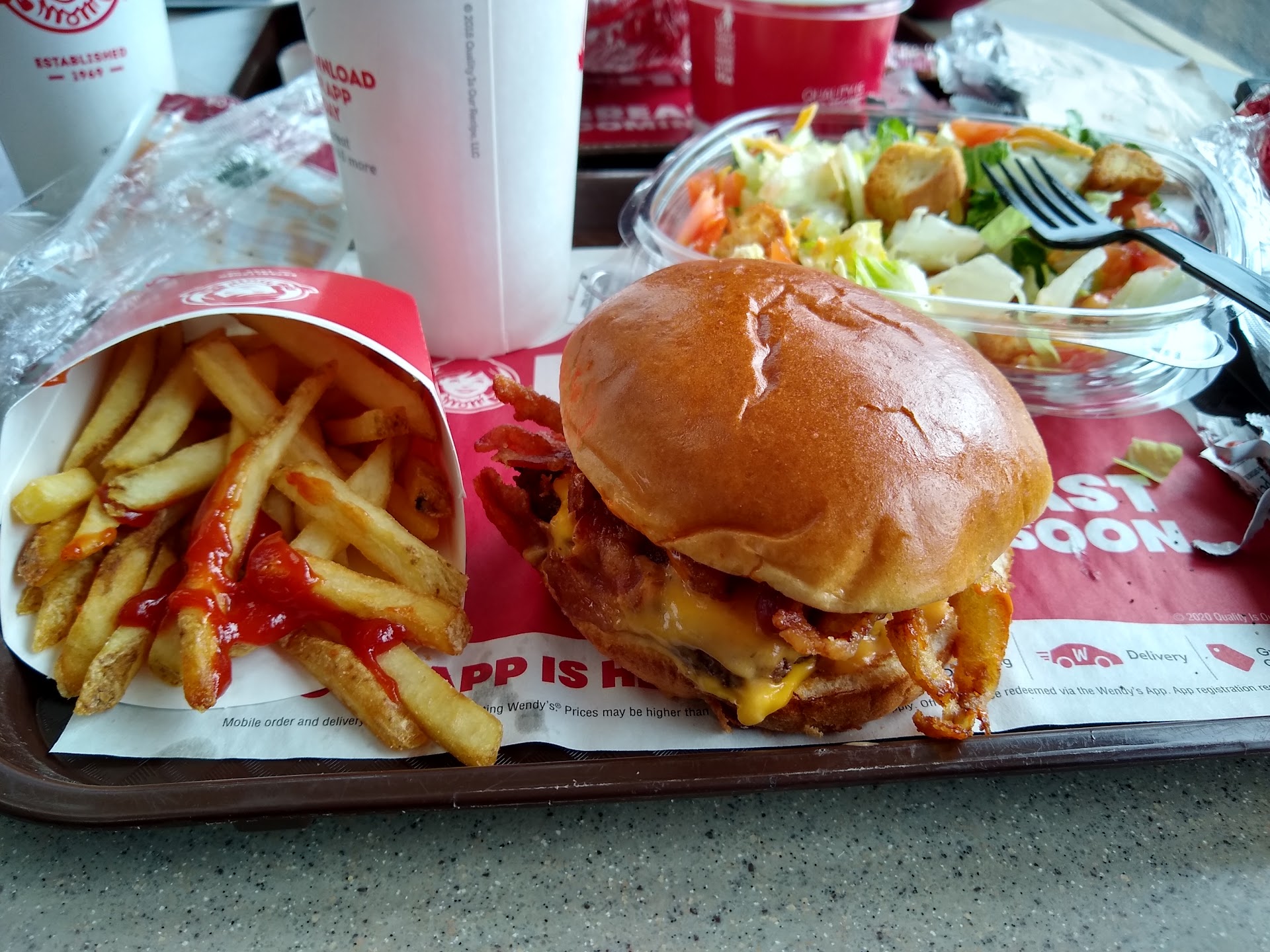 Read moreI don't know what's going on with this Wendy's. I went there ordered a Dave Deluxe double meal, and some stuff for the kids. My burger was messy, grease falling off of it, the lettuce looked old, it was a mess. It wasn't good at all. One bite and tossed it. I don't expect them to be perfect, fast food is fast food, but atleast care about your job and do it to the best of your ability until you get something better. The Fries were cold, the burger was cold, and the drink tasted more like water than anything.