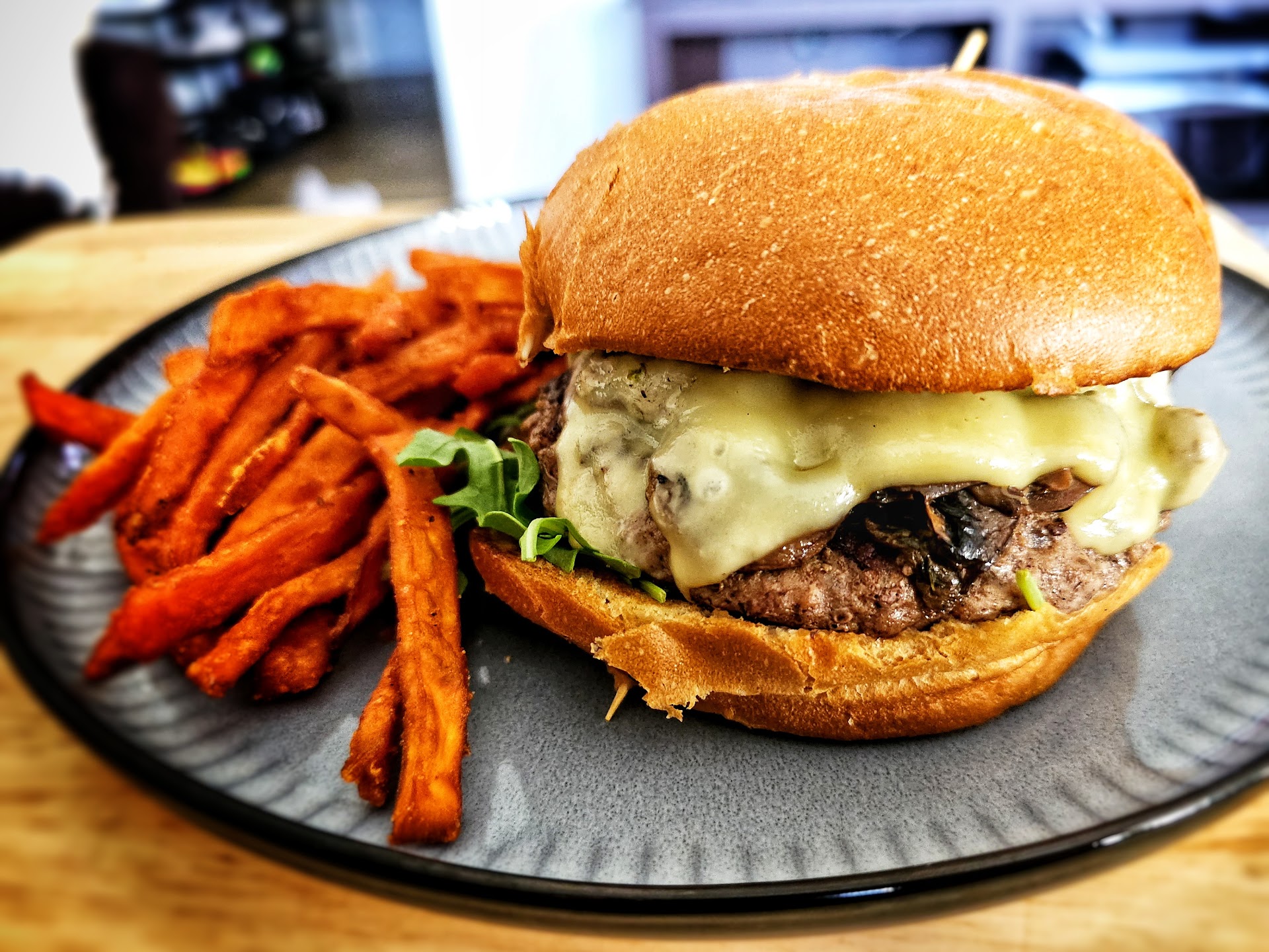 Read moreOrdered some sandwiches for dinner tonight. Got them delivered and was mostly happy with the food! Got the Magic Mushroom burger with sweet potato fries and an Emilios chicken sandwich with a grilled chicken breast instead of the fried. The magic mushroom burger was a blend of wild and button mushrooms that are seasoned and sautéed perfectly! They were delicious on their own and even better on the burger. It also comes with Swiss cheese and a truffle aioli. The blend of flavors was extremely tasteful. While the burger itself was a little bland, I must say that it was cooked perfectly to medium rare, just like specified. That alone is a rare feat, it seems like now a days! 5 stars on that! The fries, unfortunately, were cold and soggy. I don't blame the restaurant though, they had good flavor so I'm sure they were delicious hot and fresh! Emilios Chicken sandwich is a chicken breast grilled or fried, I got grilled, which is topped with fresh mozzarella, jalapeño bacon, poblano pepper mayo, guacamole, shredded iceberg lettuce, tomato & red onion. It was very flavorful. The chicken was cooked nicely and well seasoned. The bacon was nice and crispy. The sandwich itself was super salty, though. I'm not sure if it was the chicken or the bacon or just the combination of the two. It was sloppy as well. The whole bottom bun was soaked midway through and basically fell apart. It's not a big enough issue to ruin it, I would say. Side salad was decent. Fresh. Average sized. Nothing special. Their blue cheese was great, though!! Overall, it was pretty good. Would probably try next time in person vs. delivery, even though the delivery service is convenient. 8.5/10 try it, I'm sure you won't be...