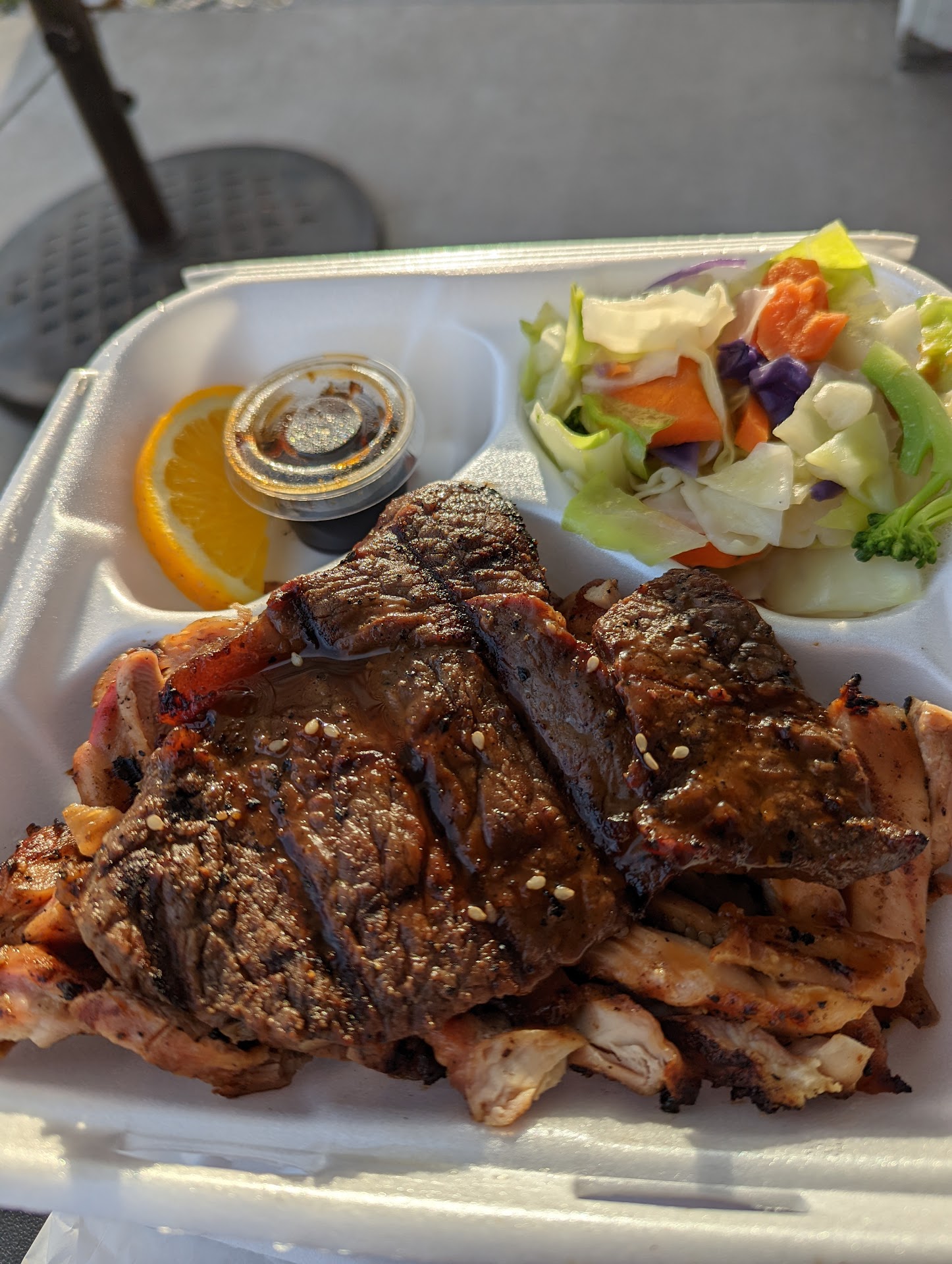 ย ย ย Read moreMy favorite go to teriyaki! They don't deliver but you can order online for pick up. I ordered the Korokke (fried potato Croquette) panko crunch and heavy onion flavor no onions inside though. New favorite ๐. I also ordered the chicken with gyoza, chicken with beef steak(it only comes one way.I like my steak super well done but juicy in the middle no red at all). The veggies are always steamed with a crunch and good color. (It's carrots, broccoli and cabbage..they got me to eat cabbage ๐) The gyoza has a great crunch with a savory middle. The white rice helps with all the sauces. I am kinda allergic to mushrooms so the Udon soup spoonful I had was delicious if you like mushrooms( I'll be taking a benadryl later๐). They provide one thin teriyaki sauce for each plate. If you would like the thick teriyaki sauce you need to specify. White rice comes...