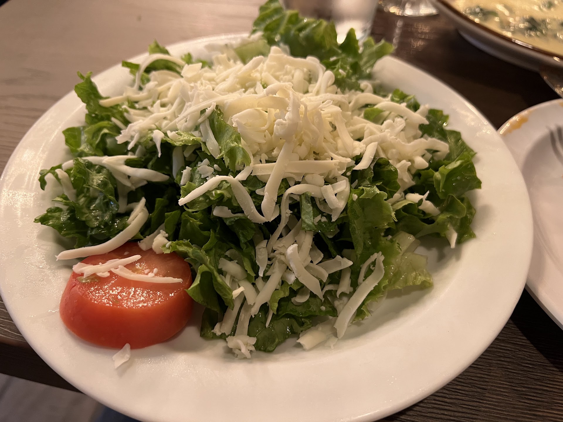 We sat inside, and eventually, after waiting 15 minutes, we flagged someone down and asked who was our waiter, and could they please send them our way. The waiter that attended us was excellent. He was courteous, professional, honest, and had good suggestions. Our salads arrived, we had both ordered Italian dressing on the side. One came with it on the salad. And the dressing was their own House Italian, not the traditional dressing we had expected… and it was awful! A cross between ketchup and Marinara, with some additional vinegar. Avoid this like the plague. The salad dressing was replaced by Cesar’s dressing, which while purchased was at least edible.