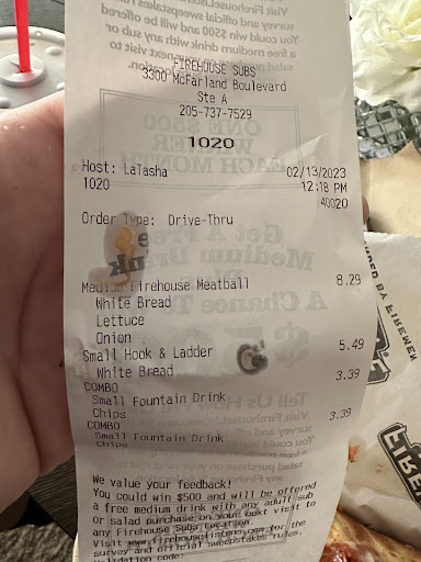 Read morePulled right up to the drive thru speaker, no cars were in the drive through, placed order with the person asking questions about what options we wanted, so one would think someone is taking this all down, pull forward to the window and sit a good solid 10 minutes before anyone even opened the window to speak with us. The employee says, can you repeat your order? I said so you haven't started it yet? Then she tries searching her memory for what it was that we ordered, so we left. Looking into the lobby when we drove past, we saw maybe a couple people in there eating. So can't say they were too busy, even if understaffed, someone could have done something sooner than that. Terrible location, even when we have been able to get a sandwich here in the past, there is just always something about it that was not very good. The location on university never fails to be excellent. Well worth the drive in order to have a good sandwich. Whoever owns, and or manages this northport location...