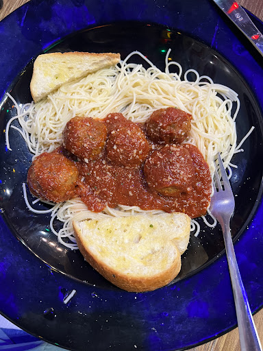 Read moreHorrible experience. Long line to wait to order. Soda machines were out so only water (but charge $.50 a cup). Ordered a medium pizza, side salad, spaghetti and meatballs + side salad. Pizza came out hot in about 10-15 minutes. After a half hour of waiting, I went back up to the front to see where the spaghetti and side salads were. Someone at front said they had a large group come in and they are just coming out now—note there were no large groups we saw. As others have noted below, the spaghetti and meatballs is horrible, basically a child’s portion for $14, and is really only pre-cooked microwaved pasta with some pizza sauce thrown on and a handful of pre-done over spiced/salted meatballs. Inedible and partly cold. They obviously dump it out and pop it in the microwave, which makes it even less excusable that after a half hour it was not ready. Will not be going back and will not be recommending this or using this for any kind of work events. Service is nonexistent and no one came to check on us or our table. The atmosphere is odd, overdone, and loud. It’s basically not Chuck E. Cheese, but not Pizza Hut or upscale. Something in between. After the half hour wait and having to go up front to check on our own food, no real apology and nothing off the bill.