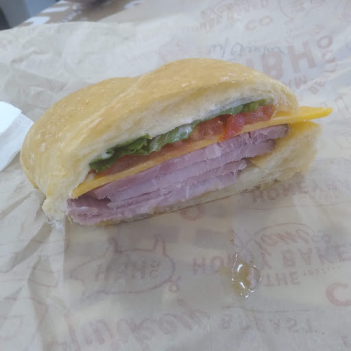 Read moreI stopped here for a quick sandwich before shopping. I ordered the classic ham sandwich. It has honey baked ham topped with Swiss cheese, lettuce, tomato, Duke's mayonnaise, and hickory honey mustard on a flaky croissant. I asked for cheddar instead. It was a tasty sandwich. There are just a few square tables with chairs. The atmosphere is nothing to look at. You might have to wait awhile to order since other customers are there to order hams and to inspect them...