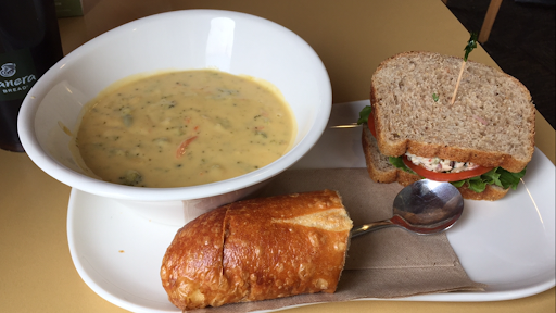 This panera bread is one of my favorite spots to eat and relax. The food is tasty and using the kiosk, I can personalize it! For example, the Greek salad personalized... No tomatoes, light onions, light olives, add arugula, add 2 hard boiled eggs (on the side) wanton noodles (extra), light salt and pepper, add chicken, 2 dressings on the side.. I usually grab a to go bowl because there is too much food for one person after all of the personalizing! I save the baguette and eggs for a snack another time. The rest of the salad makes another meal. So, for about 14.00 I have essentially 3 meals. Also, if you have a reusable coffee mug, you save 20 cents by clicking refillable mug instead of a small cup of coffee or tea. Sipping hot coffee by the fireplace is reason enough... The coffee is fantastic!