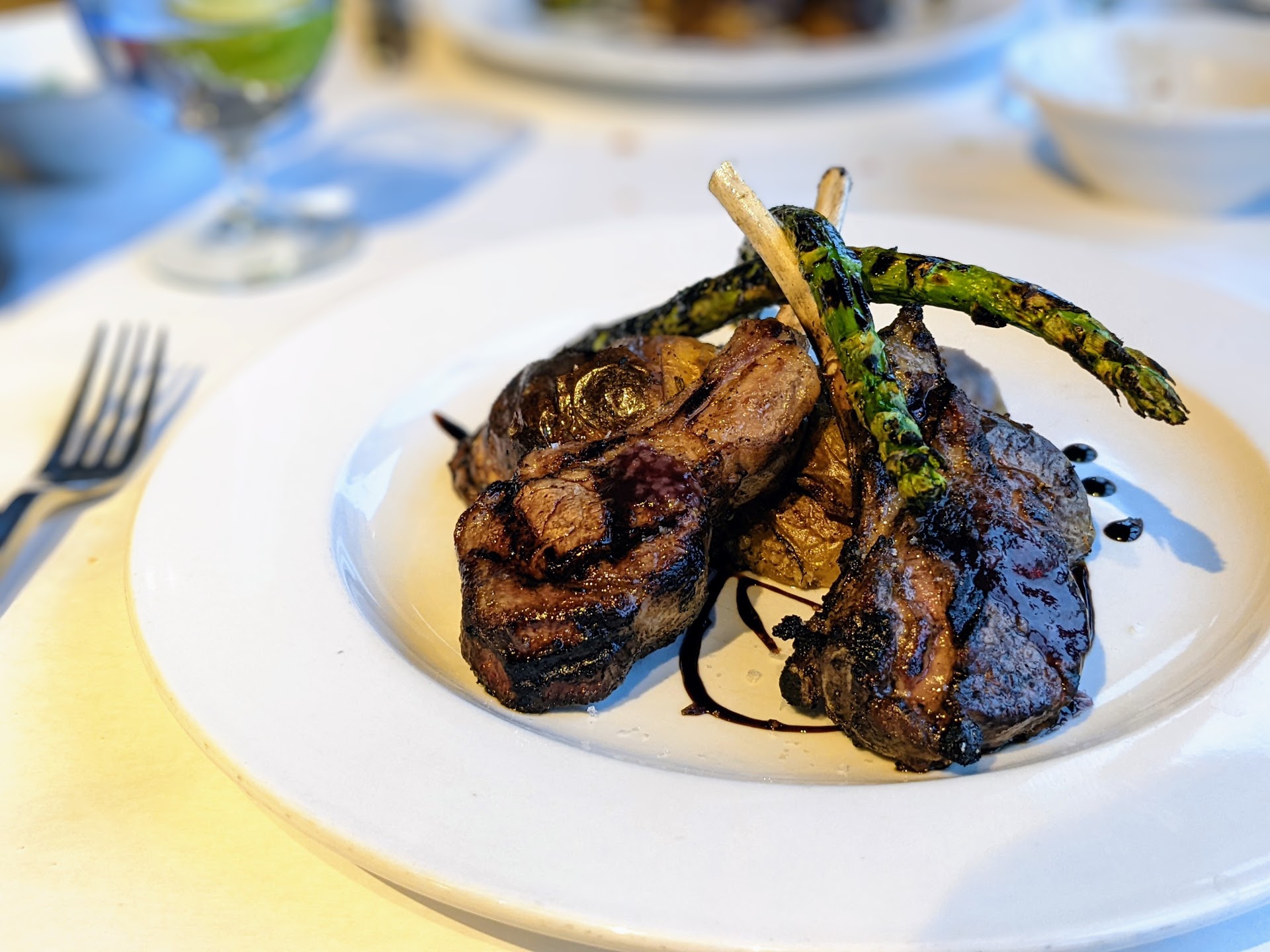 For the main course, my husband had the Radicchio e Lattuga di Boston ($15), a salad with radicchio, Boston bibb lettuce, tomatoes, gorgonzola, toasted hazelnuts, red onions, moscato golden raisins, and red wine vinaigrette. He added veal to his salad, and it was a perfect combination of flavors and textures. I opted for the Insalata Paillard with grilled salmon ($20). The baby arugula, tomato, red onion, shaved parmigiano, extra virgin olive oil, and lemon dressing complemented the perfectly cooked salmon, making it a light yet satisfying dish.