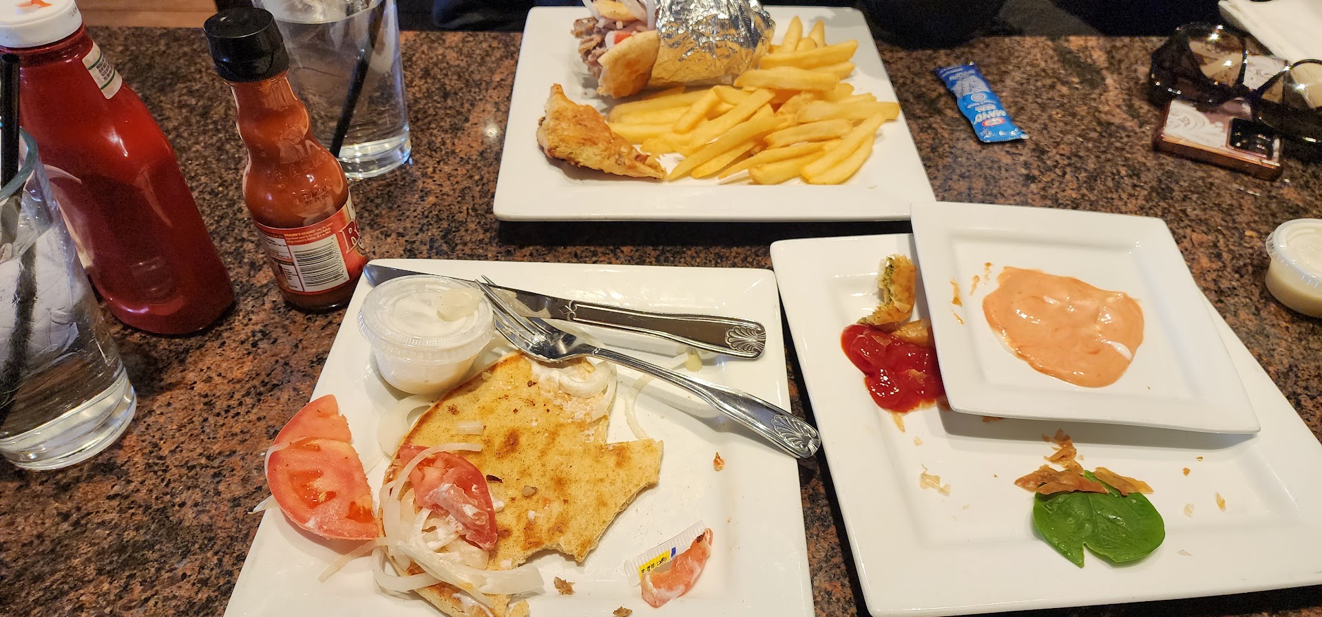 Read moreThe food was ok; about what youâd expect from a diner-class restaurant. Had a Greek salad, gyro & fries. Itâs been a long while since Iâve experienced service that actually made me uncomfortable. Dined solo. I ordered around 7:20p. Closing posted as 9p. I was not the only one there. It was as if these two waitresses wanted to rush me out of there to close up and leave. Plates cleared at the moment of the last forkful. Half a plate of fries removed while still working on them. Check brought before I could order dessert and again before ordering carry-out for a family member. âIs there anything else I can get you?â âYes, please: some more napkins.â She brought one paper napkin (in addition to the one in which my knife & fork had been wrapped). Clearly not a place to dine leisurely and catch up...