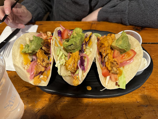 Read moreWe will be back as it's a cute local spot and the food was really good! You order at the counter and get a plate of food delivered to your seat. The service was great: very friendly, accommodating, and when one of our orders was wrong, it was corrected quickly and multiple people came up and apologized. Everything but the plate was disposable. (We had 1 pint glass and I assume the wine came in glasses also.) Self serve soda fountain and condiments. The decor and theme were beautiful while being cozy and rustic. There are different seating options: roughly 2 four-top tables, a long standing height table with stools, a handful of seats at the bar, and couches in the corners. So be aware you might be eating off your lap or a side table / coffee table. It was raining but we did see some outdoor seating in the side yard. The traffic is loud on this road though and maybe they will put up a fence with bushes as a...