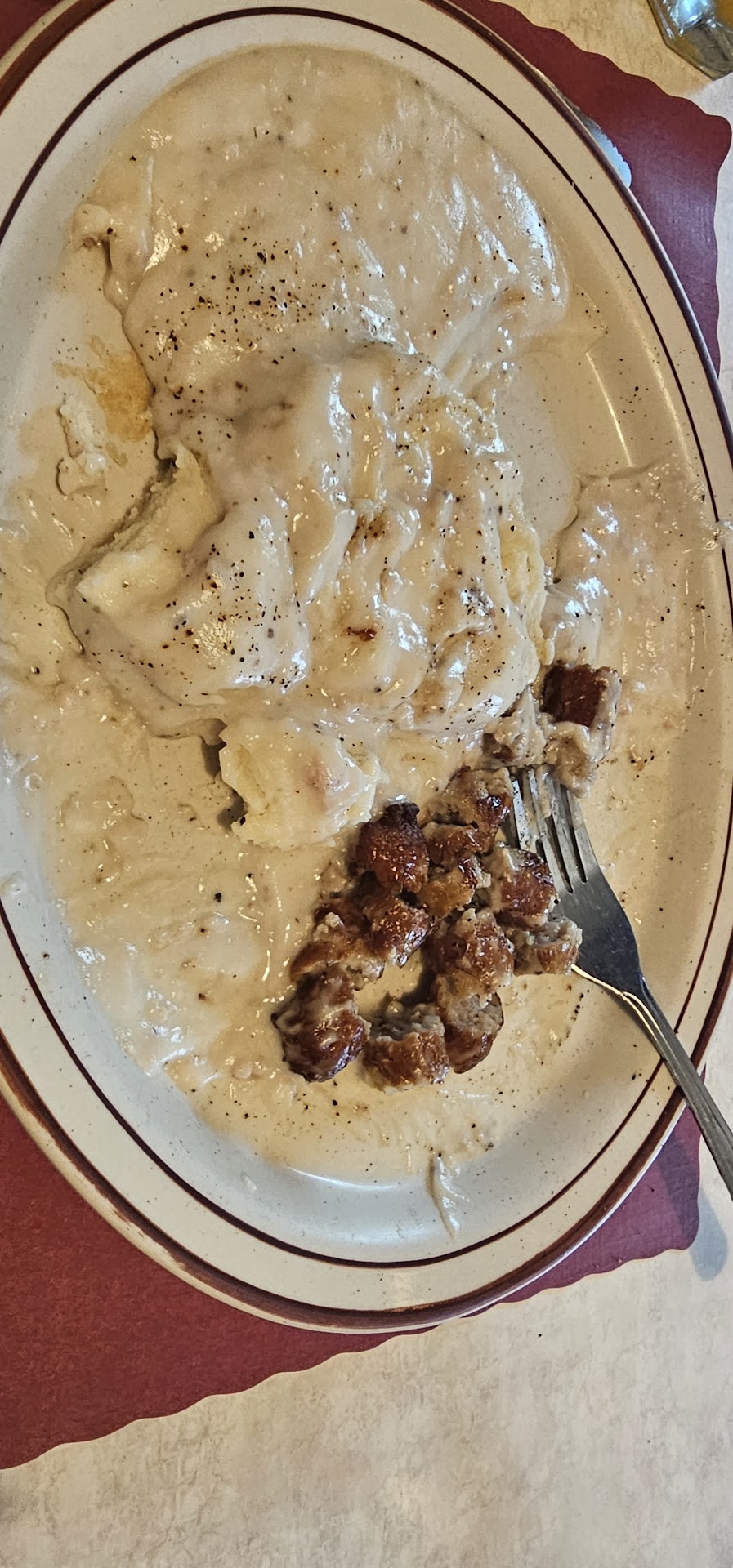 Read moreWas there on a Friday at 4:00, wasn’t crowded at all. Service was very quick & we told her it was our first time there so she explained some of their most popular dishes. My wife is on a strict diet and she wanted some tuna salad on a bed of salad which was very good. The waitress explained that the chicken salad was very good too. I had the all you can eat fish, cod I believe, which was very tasty. It came with a cup of soup and two sides. They made sure my drink was refilled. The waitress even brought us a strawberry crepe which I ate because of my wife’s diet, which was very good. They serve breakfast and lunch as well. Usually open till 8:00 but close at 1:00 on weekends. A player piano along the wall which adds to the atmosphere. Overall the food & service were very good and we will definitely be back for more. They serve ice cream and desserts as well. I recommend Sweet...