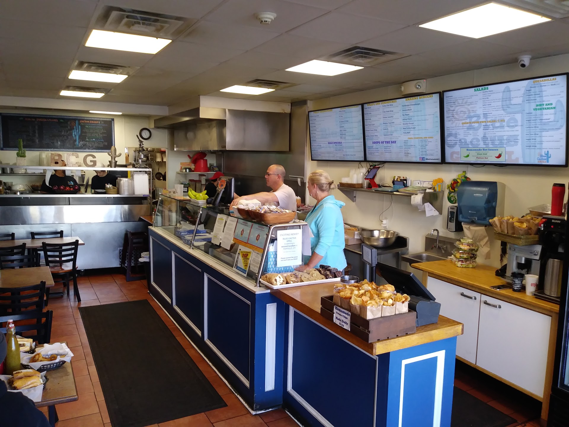 Read moremy boyfriend and I were headed to new York and have a tradition to find little hole in the wall restaurants to stop at for every trip. We found this gem and let me tell you we weren't disappointed. Great place to stop to grab a great wrap, burger, salad, etc. All of the food is made with fresh and real ingredients and the service is 110% exceptional. it's hard to find a place that has it all, but the blue cactus has it all!!!!! Food was delish and even grabbed one of their two hommade hot sauces on the way home. (cool side note, you can buy the hot sauce the first time at a set rate and come back if you love it to get it discounted for a refill.) in a hurry? no worries, this small resturant has a free downloadable app so you can order and pick up (or deliver) for any time crunch! can not wait to visit again, have saved this place to ensure we go back and visit again soon. thank you all the staff from...