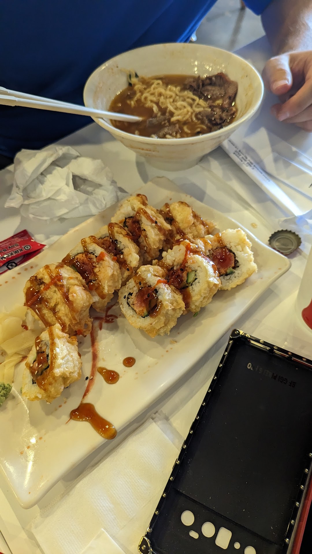 Read moreI was feeling like eating ramen today and my friend brought me here to California Sushi and Teriyaki. As I walked in I could see how clean this place is, I also enjoy the music they had playing. It was a mixture of classic and alternative Rock. Well in this visit I had a combo #89 Ramen and golden crunch roll, I ask for spicy beef flavor 😋 the Ramen soup had a very good tasty flavor, the beef was sweet and very soft and tender. I believe they use the same beef from the teriyaki bowl. Now when it comes to the Golden Crunch roll don't expect to be just like the one you get when you go the a Japanese restaurant but never the less is good sushi. The price is on point at $9.75 you will leave...