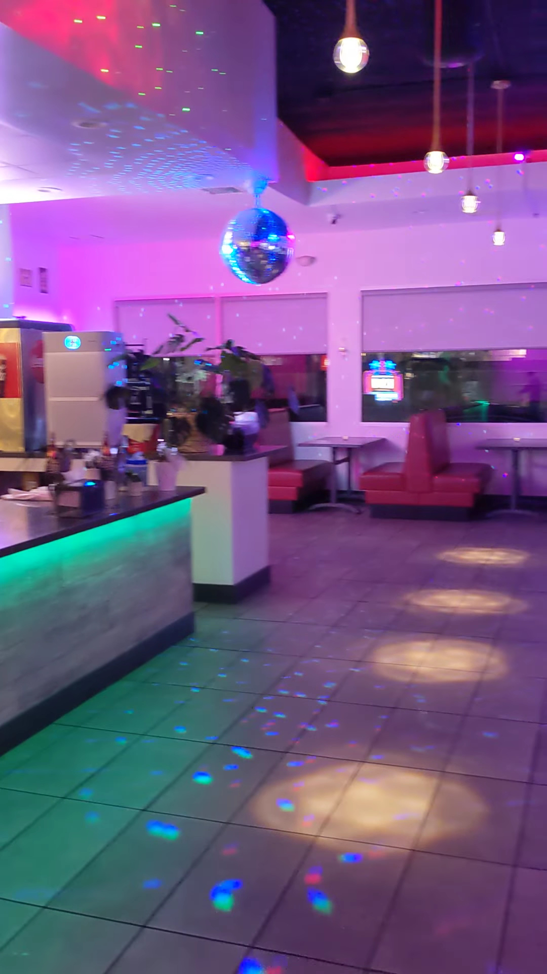 The setting is a bit odd I'm not really sure what the disco ball is for. However, coupled with "its raining men" playing in background I imagine they want people to dance there. They've set the scene for it. All in all it seems that they haven't really figured out what the theme of the interior design is considering they've got soft lighting with candles on the tables but they've got disco music and a disco ball. "Macho man" even came on while we waited.