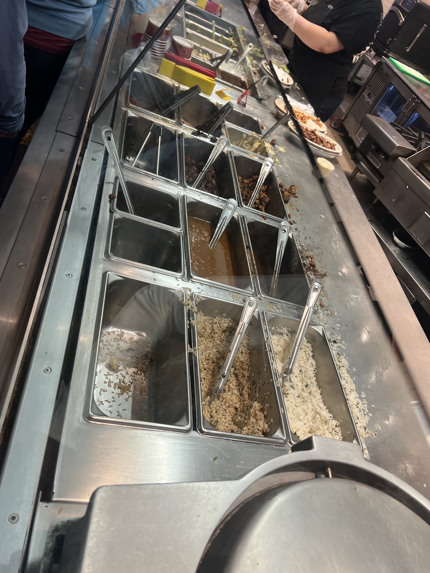 Read moreThere was 4 people there one was at lunch one was stuffing to go basketball for door dash bag,a girl cooking beef,I was 2nd in line the person in front only want guac and chips, we waited 10 min. And I waited 8 minutes more before the guy with bandages on his left hand waited on me. I was going to have the chicken bowl, but the chicken was dried out, not looking ediable, I let him know, he just didnt care ,So I got the steak, I asked for dbl.rice,single meat,salsa mix chees,asked for double dip rise,and sour cream, When I let him know I wanted dbl cheese,and he sprinkled a small amount on top, saying I gave you alittle extra,and that's enough. That being said, the place was a mess, under staffed and the guy with bandaged fingers needs to get reschooled. I taking the meat that is unediabo because it's an ball of big veins and grizzle. . No only was the portions was small, the meat was mostly fat,grizzle,veins,, to top it off very thing was cold.. I got a bowl,you would think it would be really warm or hot? I'm taking this mess back to them.... they gotta fix it, this was almost $11,just to...