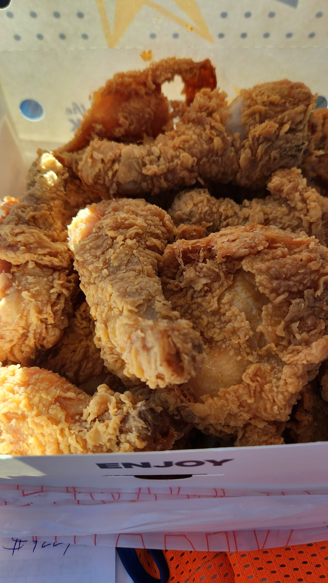 And they give you Texas Pete's hot sauce if you ask. I love vinegar hot sauces on my fried chicken.