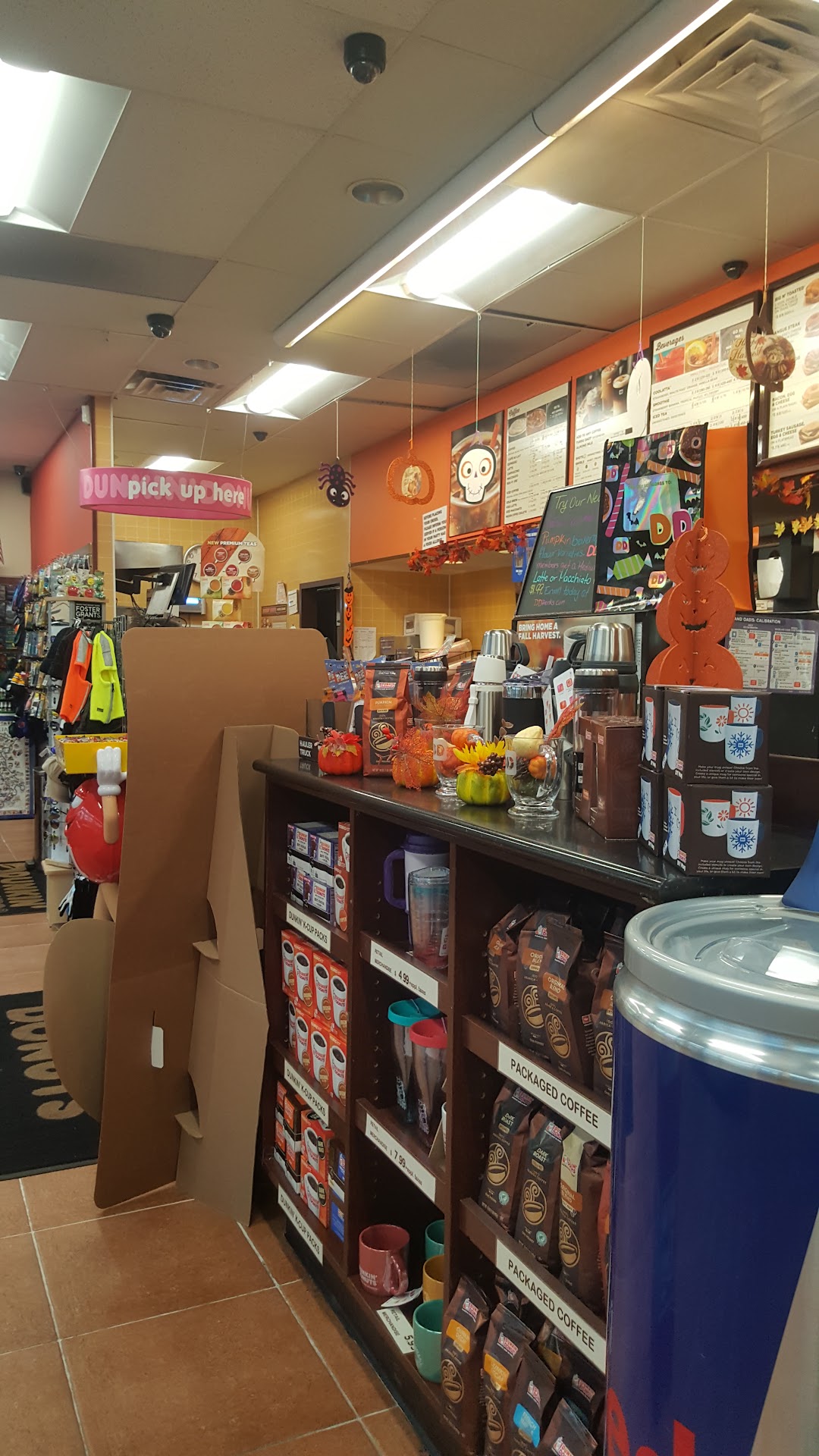 Small out of the way DD. Has basic donuts, muffins, bagels and hot breakfast type sandwiches. It's a good spot for a late night delicious donut snack; they're always fresh. I don't drink coffee so I can't comment on that topic but I'm guessing that this DD has coffee just like all the other DDs. Be prepared for a short wait; I've only ever seen 1 woman who works the counter. She seems a bit overwhelmed as the DD spot is in a gas station convenience store where there are a lot of customers and only her to take care of them all. Convenienly...
