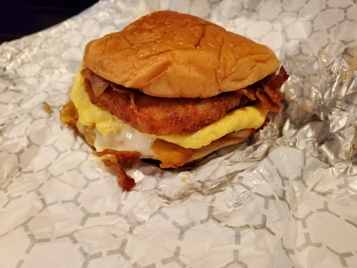 The Morning Clucker is a breakfast sandwich with bacon, eggs, chicken nuggets, and maple butter. I added a hashbrown and it was a very tasty sandwich.