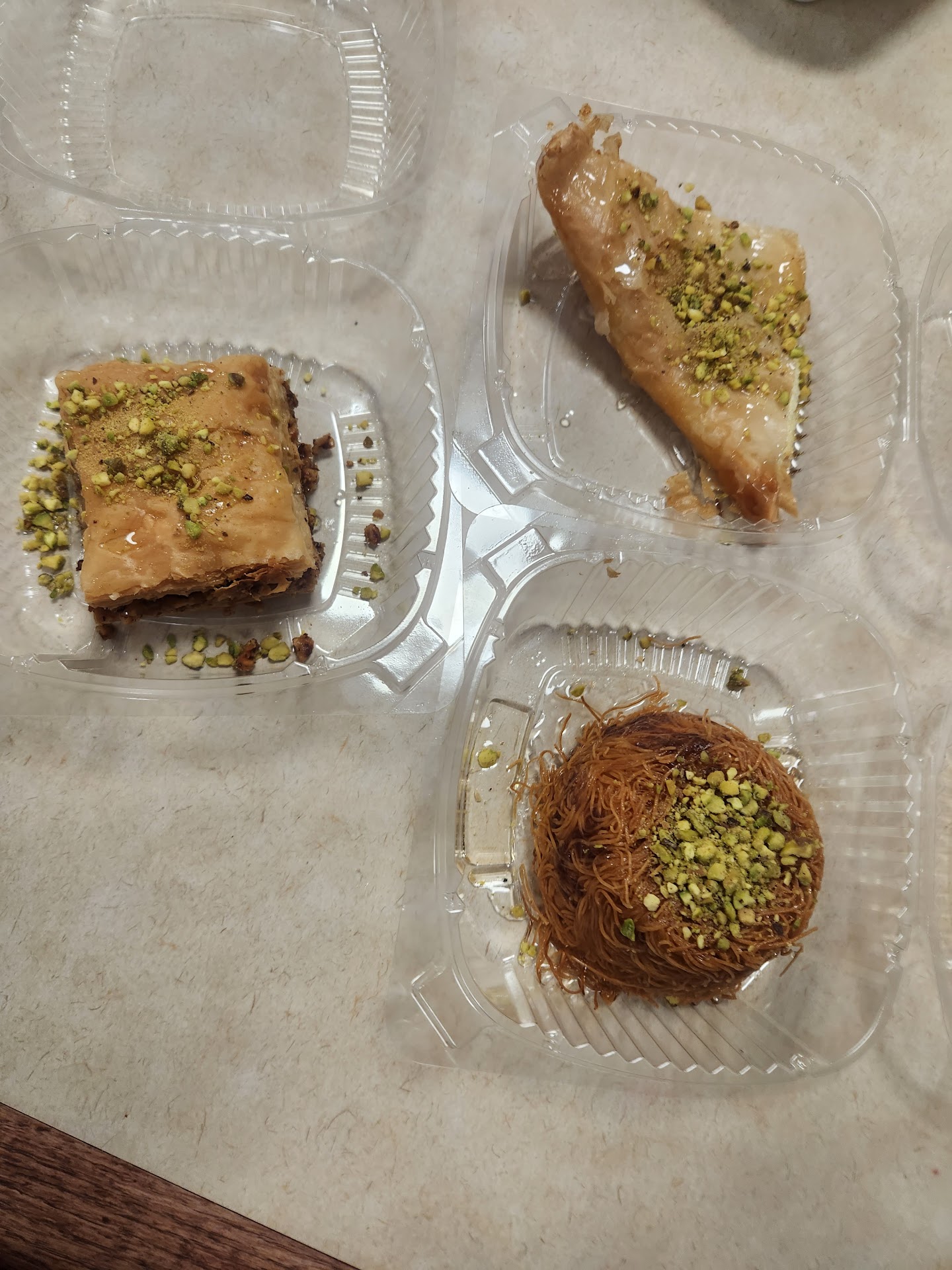 As foodies we are always looking for a new place to try and my friend found a gem in Norwalk!, A group of us (3) ordered different combo plates to share to try a little bit of everything. We ordered from Falafel , chicken, steak, and kafta kabobs. Let me tell you every dish had its own delicious seasoning and the flavors were amazing. I've got to hand it to them, I was very impressed by the flavors and love they put into every dish we tried. There were two ladies, we did not get their names. They were so kind and gave us to try the humus and I forgot to mention we ordered dessert, I know, I know! We couldn't resist lol :D As for dessert we had the Baklava, Kunafa with cream. Again so nice of the staff they shared a dessert called Warpa with cream. If I could describe each dessert this review would be much longer than it already is. You just gotta try them out! Going for the first time they left a great impression not only with the food but how helpful and kind they were to answer our questions. I can't wait to try their other dishes and desserts. P.S portions are generous and...