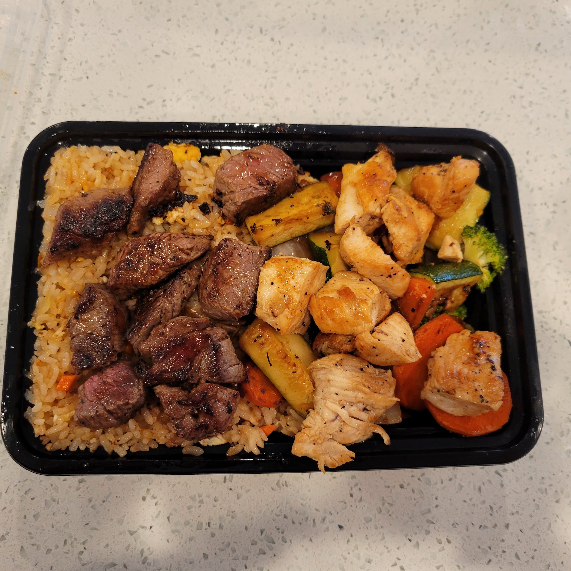 Read moreI was extremely excited to come here after the raving IG posts. I did make the drive to Norwalk to try it out, and after finally eating the food, I was very regretfully disappointed. The wait was long... about 60 mins wait for my 2 entre to go order. I ordered the New york steak, chicken and shrimp with the fried rice, and the 2nd entré was the New york steak with chiken and steamed rice and 1 drink. I sat waited for my order. Saw people come in and order for indoor dining , get their food, finish and leave. Not sure why my order was taking too long. The staff did seem apologetic and I was told twice that my order would come soon. After $66.00 on 2 items and an hour wait, my food was ready, and I took it home to eat. The steak was bland, flavorless and so was the chicken. The shrimp was overcooked yet salty. The fried rice was very mushy, soggy and had a not so appealing taste... it reminded me of heated up plastic. The vegetables were great and so was the steamed rice. But $66.00 for vegetables, steamed rice and 1 drink is definitely not worth it. The portions are generous but now I need to figure out how to recook my food so it's edible. The food was very disappointing and now I wonder why I questioned the universe as every time I tried to make it something came up, I said screw it and still made it happen... next time I...