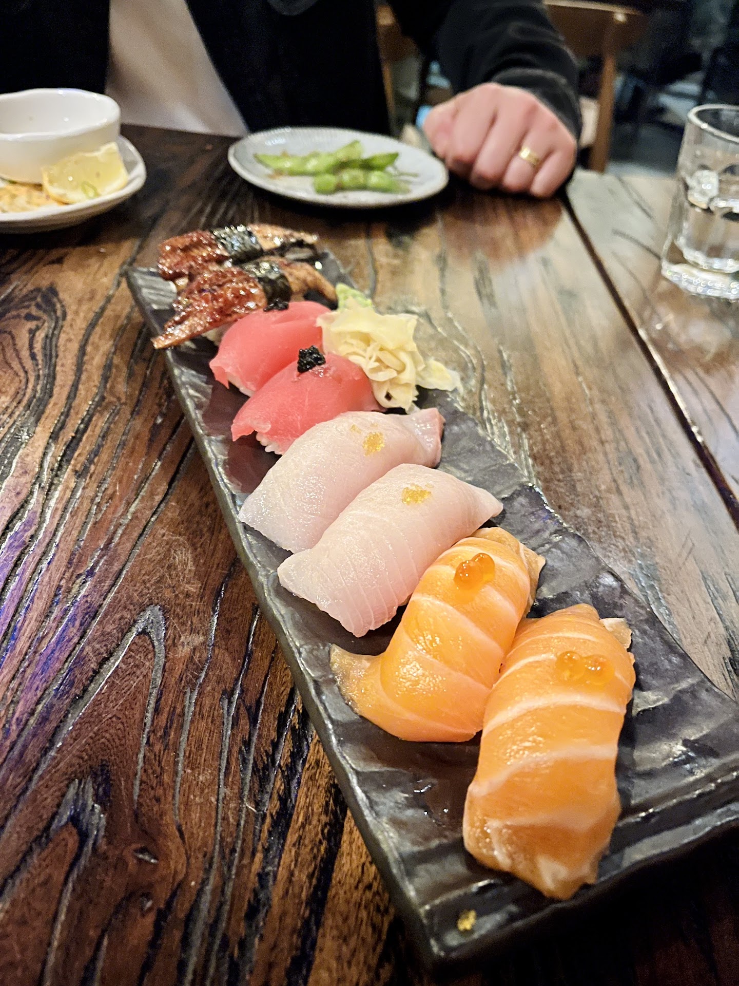 Nigiri sushi set was yummy, large pieces of fish, good sushi rice. The unagi was a highlight.