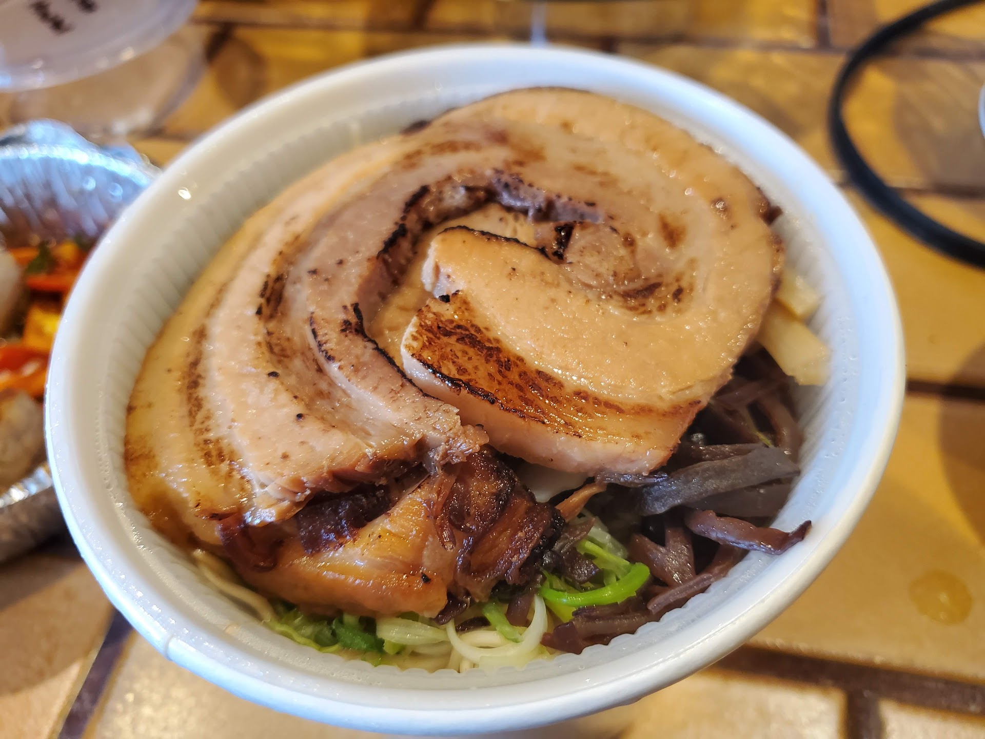 The tonkotsu ramen was loaded with lots of ingredients all which kept nicely for delivery in a two segmented container. The brother was nice and flavourful but the real star of the dish was the pork which was cooked beautifully and practically melted in my mouth.