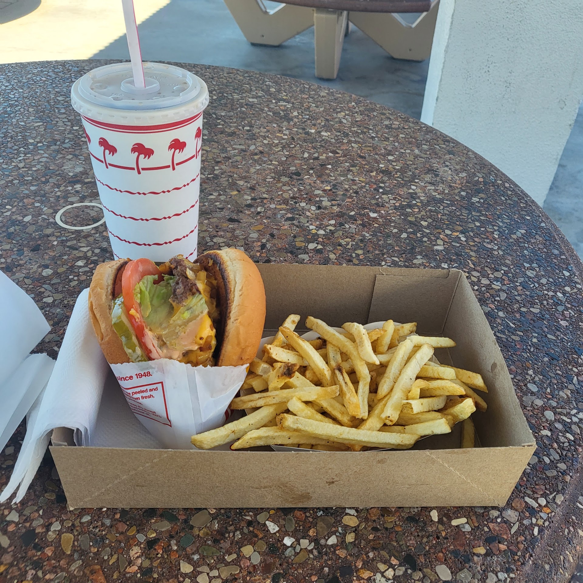 Read moreLiterally, in n Out, no matter how long the line is, thanks to mobility of the order takers advancing throughout line. Can't say I've had an error in my other. This location is as convenient as any other InnOut establishment. The real test is if they agree to make certain unorthodox meals found in their secret menu. Like the animal style fries mixed sprinkle with meat. I forgot the name. I've heard some spots will do it, and spots won't. It is what it is. I've been ordering 4x4 with no union or tomatoes, animal style fries with a 7UP. Last time, I ordered two 4x4 no onion or tomato and two animal style fries with 1 7UP. Why, you asked? Because they were for me. Perhaps I am a sick puppy and should seek help. Before things get out of hand. You what? It's been out of hand. There's no turning back from 4x4 to 3x3. I say this to those who listen. Take heed on adding patties. It can easily become a...