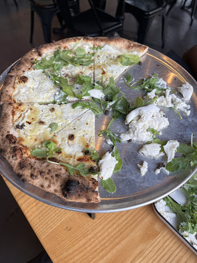 We got two pizzas: a "Lil Guy" (tomato, hot oil, mozz, truffle honey (not overpowering, and we held the pepperoni) and a "Potato Pie" (fontina, potatoes, caramelized onions, chives, and we held the bacon). The menu has many more offerings we're excited to try.