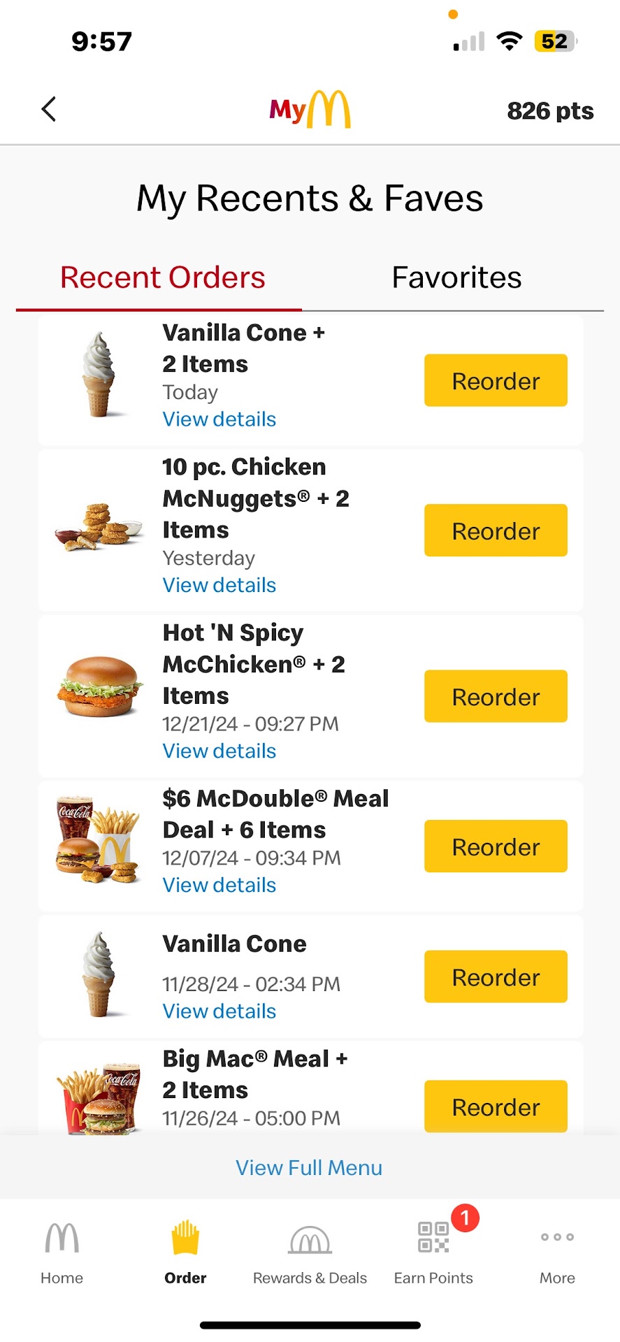 Read moreSo tired of being pushed around by the world few days ago the fries seemed to be out of trash not even put in container and asked for a McRib and other things asked if order was correct? I was reading for only few seconds and rudely said is your order correct? so I said yes in distress, no McRib and horrible fries and today the dumb app took points for two ice creams I know cus it said two on app and my points went from over 3000 to 826 ice creams 1500 normally I keep my mouth shut because maybe I’m wrong but I saw this time and asked the lady she just kept looking at me and I knew if I showed her the app she would not care but showed er anyway, and I said will do I get another one she like well you only get one I say they took my points she kept staring and doing that sarcastic okAaaay I said never mind once again she said okay?… omg I wish I did not say anything now just raised my blood pressure witch is high already I may post screenshot as proof but let me make make sure nothing to personal on it, and those combos they never gave them to me just took my points all I ask is stop...