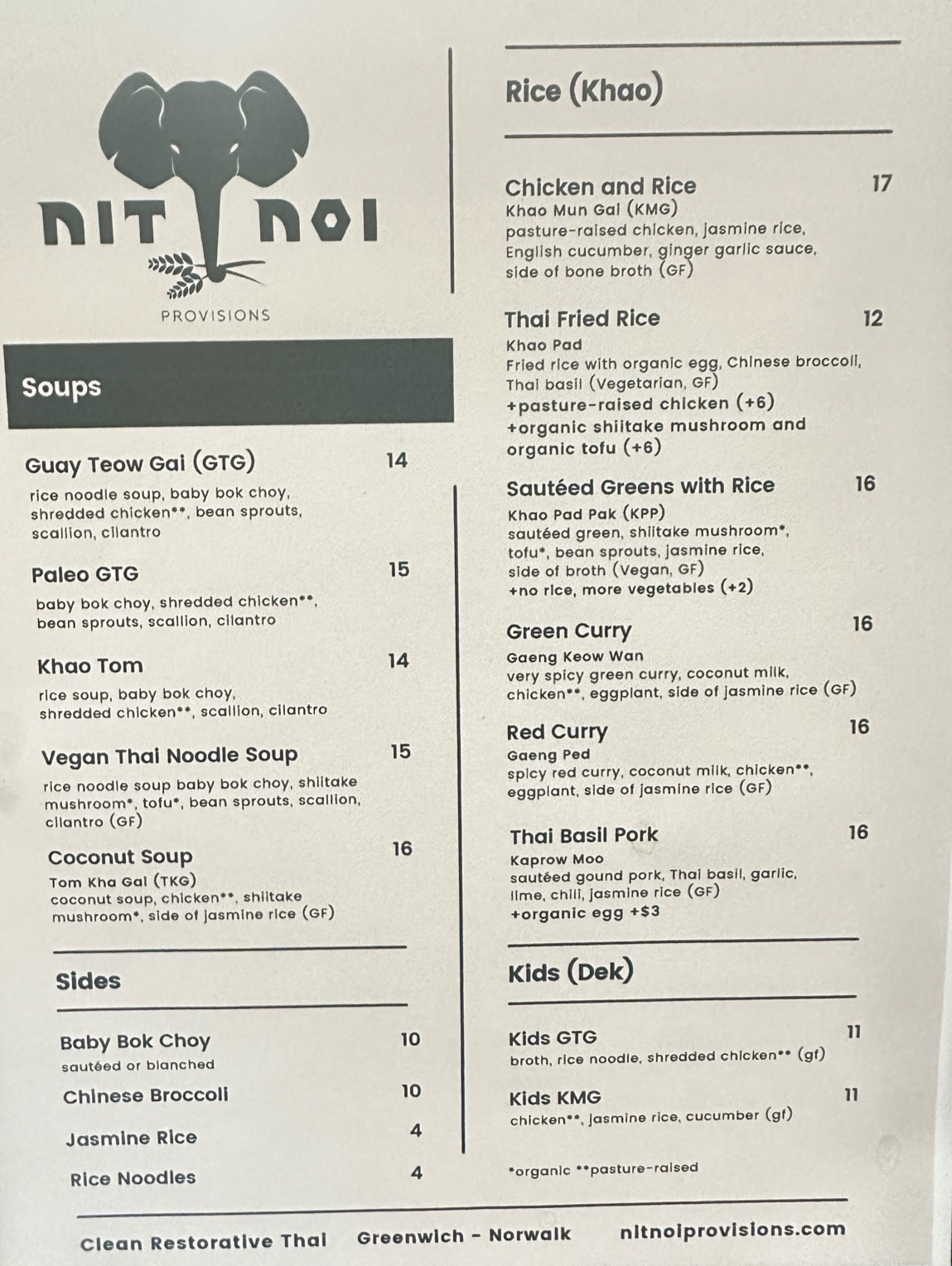 We did take out from this place and tried all vegetarian options. The steamed and pan-fried vegetable dumplings were delicious and the sauce they come with hits the spot! We tried all three vegan broths, and revive was our favorite and will order that again! The coconut based broth is very soothing and comforting. The fried rice (we ordered without egg) was delicious but for a spicy kick, next time we will definitely order their spicy sauce on the side. The KPP dish with sauteed greens was a bit bland for our taste and will also order that next time with the Restore broth and some spicy sauce. Our friends ordered the Thai vegetable noodle soup and liked it too. Overall, I recommend Nit Noi and will definitely go back again. They close at 7 PM so please pick up the takeout before then from...