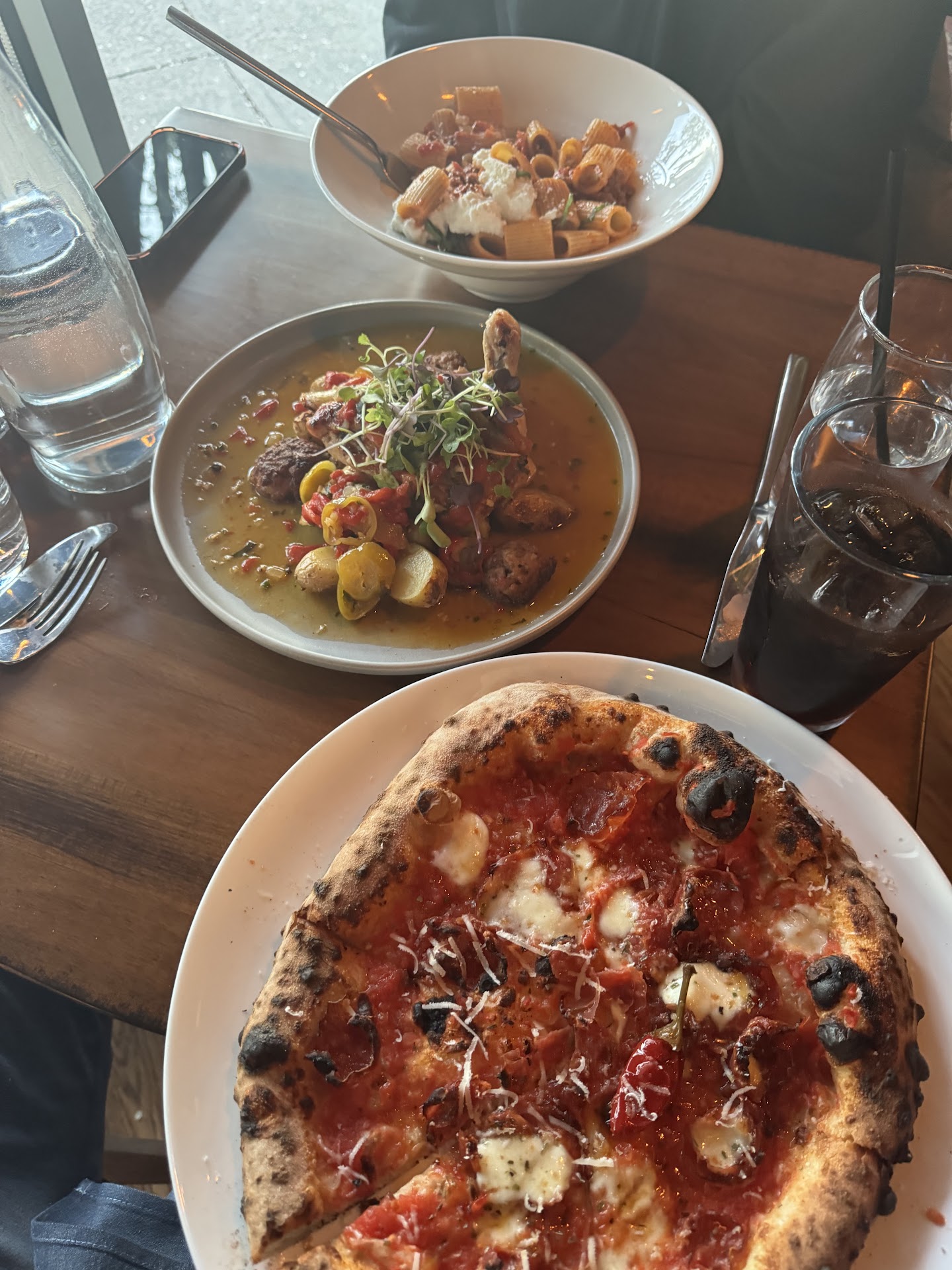 For our main dishes we had the rigatoni bolognese, the Calabrese pizza, and the chicken scarpariello. Each one was absolutely incredible in its own unique way. The rigatoni was a high quality pasta, flavorful bolognese sauce which has the perfect mixture of meat and sauce. The Calabrese pizza has chunks of fresh mozzarella, fior di latte, with slices of salumi, and homemade hot honey. The owner explained the process of making the homemade hot honey which gave a flavor profile to the pizza that’s been unparalleled to anything alike. I’ve had a lot of pizza, and this was simply amazing. It is in my top three favorite pizza’s I have ever had. The chicken scarp was beautifully presented. The chicken was cooked to perfection, it was a hefty piece of meat that was tender and juicy. Chicken, potatoes, peppers, and sausage and more were all cooked together to create a satisfying dish.