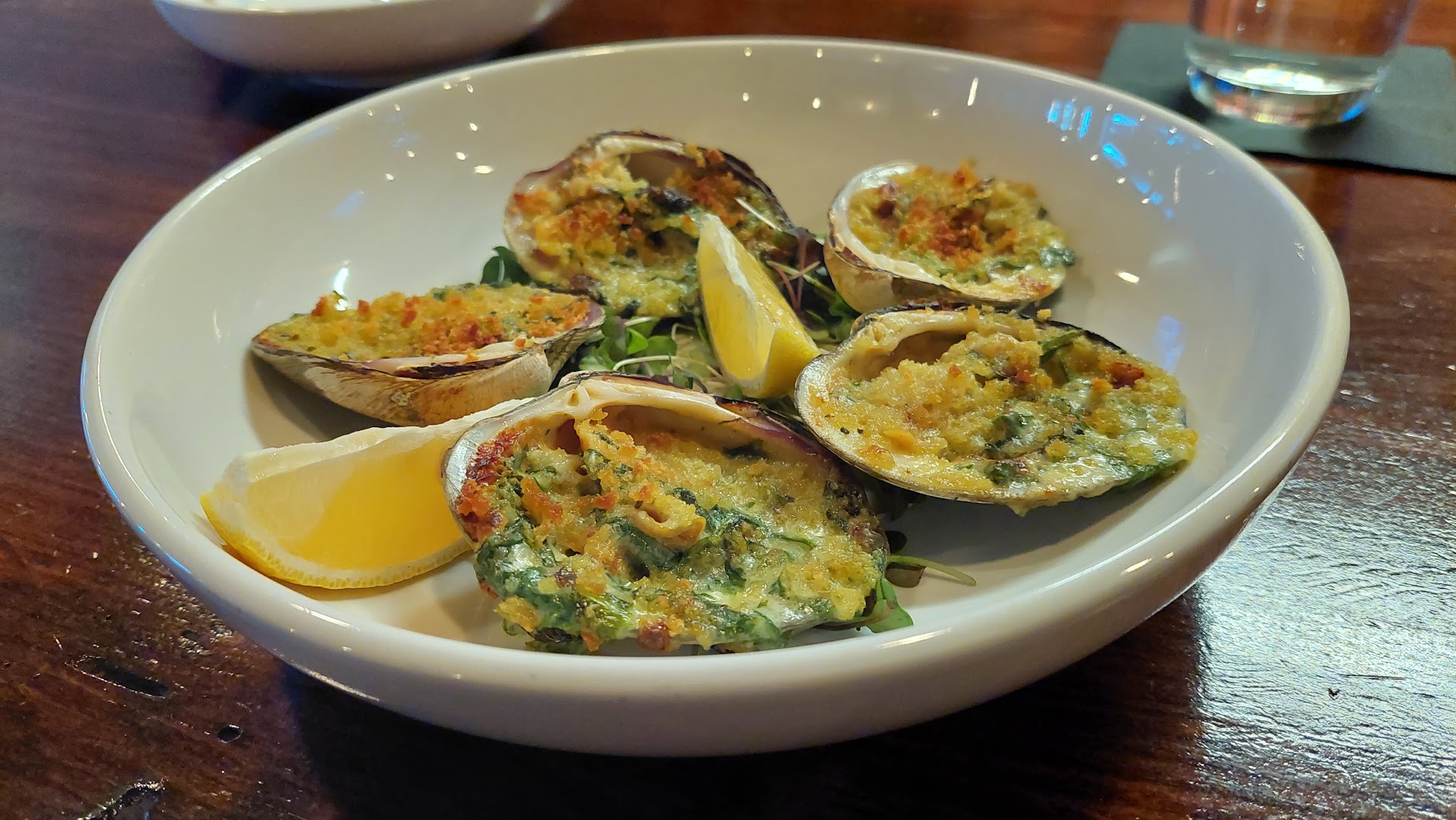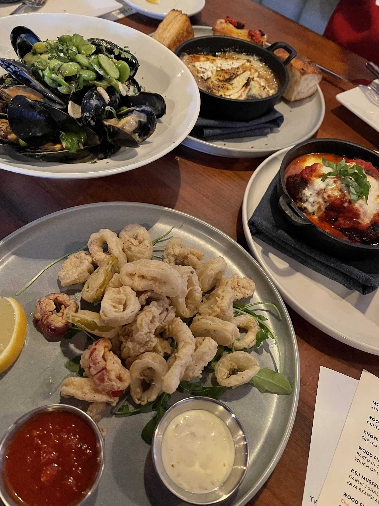 Read moreWas here this evening for a bday! The reviews looked really promising so i was extremely excited to eat here, but sadly I left disappointed. Some dishes were good some were just ok. We had 3 different wing flavors, pizza, papardelle, short rib, zupe de pesce and dessert so we had a range of things. I get this isnt a wing place but the wings were disappointing, while very meaty they lacked flavor, the sauce barely adhered so you felt like you were eating just cooked chicken wings, with the sauce being an afterthought. The garlic parm was the best of the worst because the sauce was thicker and coated the wings more. My opinion is pass on wings here. The brusselsprouts appetizer was the best dish of the night. It was so good and balanced with the bacon. Pizza is Neapolitan style which i have to admit is not my favorite style. Too much doughy crust and chewy over all. Im sorry but I wouldn’t even consider it good for Neapolitan style. The short ribs were tender but the dish was under seasoned, needed salt and had very little demi glace. Pappardelle was very good but again very little sauce and needed salt. I don't even like saying things need salt because i have to admit most things we eat are over salted but unfortunately most of the dishes including the wings and zupa were under seasoned. Cheesecake was very good, no idea if they make it in house though. Was extremely loud in there music volume was very high. Impossible to have a convo. Service was attentive and friendly. Unfortunately will...