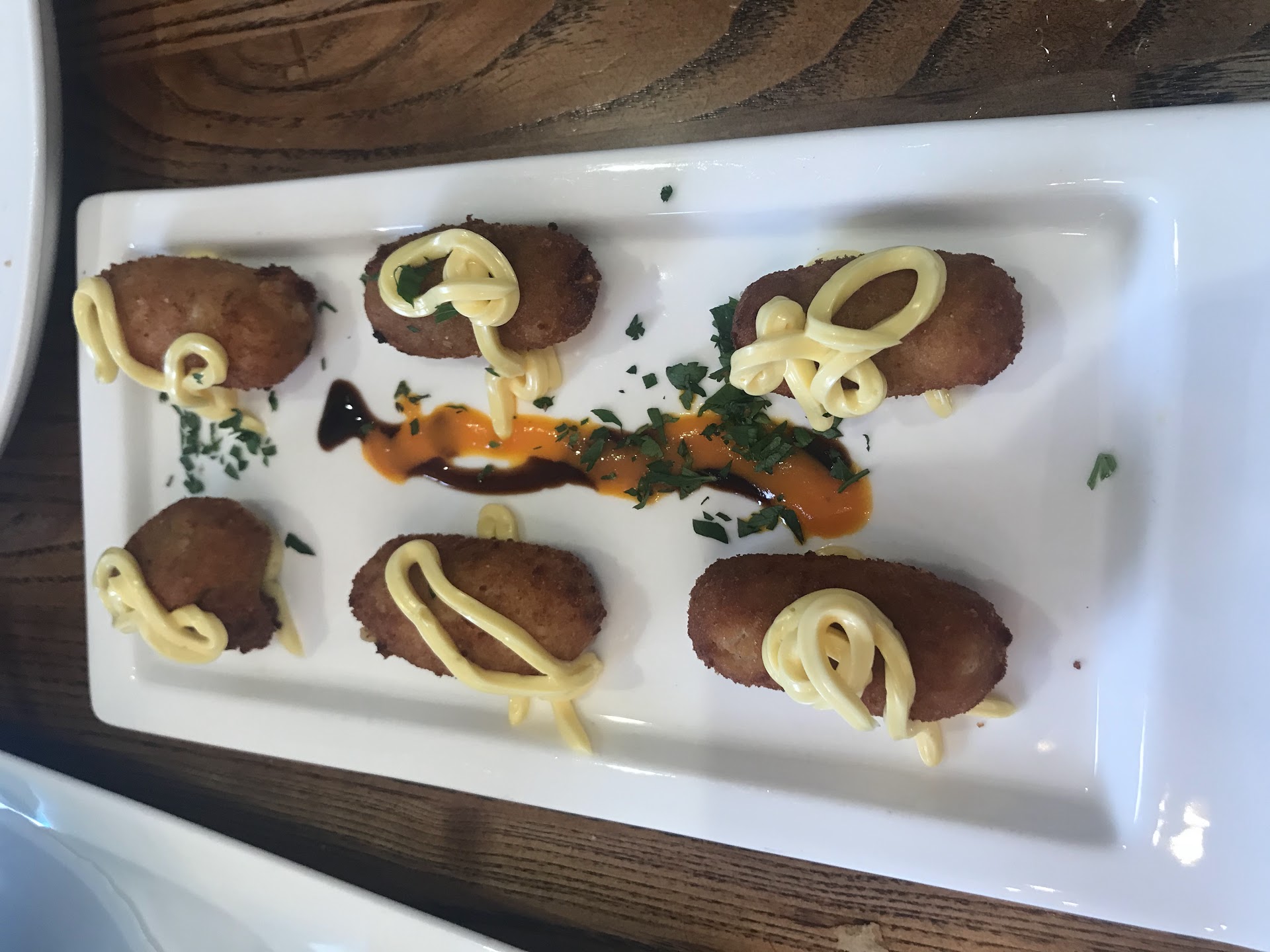 Food was only ok. We only had a few items. We started with their codfish croquettes.. which were smaller than what I was used to but you get six pieces. These were very tasty, well seasoned, and perfectly textured. I also liked the garlic aioli sauce it was served with.