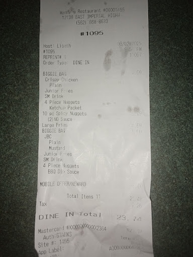 Read moreMy family and I frequent this Wendy's a few times a week. We went to Wendy's 9:51 before the dining room was about to close. I have the receipt, I ordered the same thing as before, a Crispy Chicken Biggie Bag, and a Jr Bacon Cheeseburger Biggie Bag for my mom and brother. I ordered a 10 piece Spicy Nugget and large fry for myself. I ordered the Biggie Bags with plain sandwiches, as always, and I had a very long wait. When we got home, Mom's Crispy Chicken was not plain, had mayonnaise and lettuce (not what I ordered) and the bun was soggy. My brother's Jr Bacon Cheeseburger similarly had everything on it too. Nobody ate, except for me and my nuggets, except there were 2 plain nuggets among my spicy nuggets. It was a very...