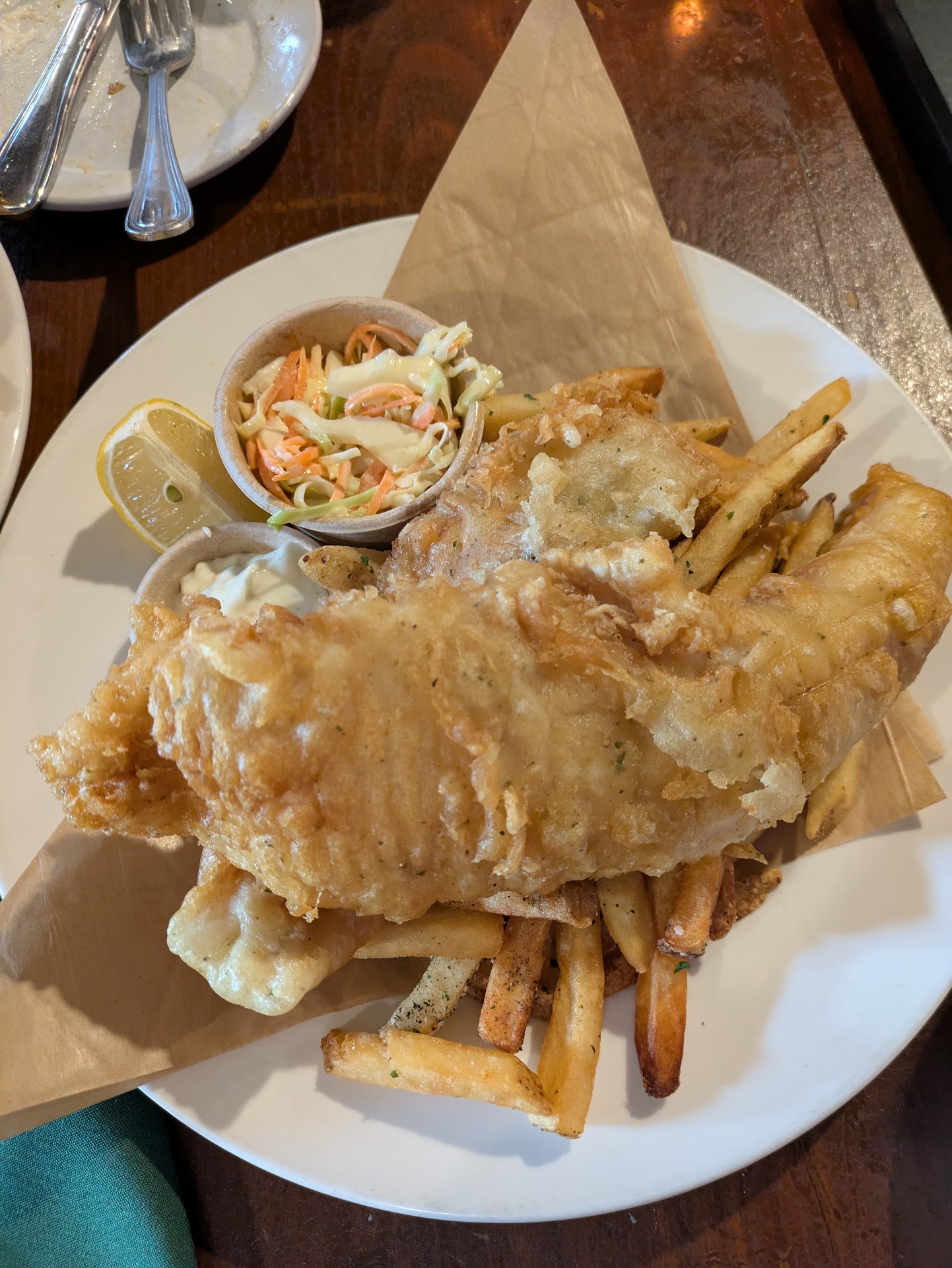 Read moreDon't know why it took us so long to check Tinker's Son out. It was a pretty miserable Saturday afternoon and it was the perfect place to be. Low key and cozy. Great service started off and finished the visit. Had to start with one of our favorites that we can be pretty particular about, curry fries and they did not disappoint. Fried fish and feckin chicken finished up our meal and both were fantastic. I nice ratio of batter to fish, meaning the the batter didn't overwhelm the fish. The chicken had a great flavor and would be hard not to order again. Oh, in case you were wondering, they pull a...