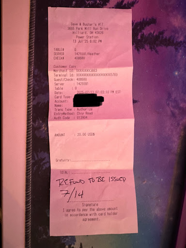 Read moreWe planned to stop at this location after meeting halfway to drop my oldest son off to go back to visit friends who live in Indiana my husband myself, and our other four kids were with us so after a 2 Hour Dr. it was a plan to just hang out somewhere and have some fun before heading Two hours back home. We spent basically $300 to get cards loaded to play games only for two adults and four kids. That being said the place was a bit busy but it was a weekend so that was expected, some games were down for maintenance or broken, and a lot of games seemed to lag or just simply wouldnât work and werenât even marked they were unavailable. But thatâs not even the bad part. We didnât partake in food we already ate elsewhere and knew the food reviews here were terrible so we didnât bother. Hereâs the kicker. The newest game room, is $20 extra and you get to play for 20-30 mins and as many people as you want to involve in this amount of time. Iâve never experienced this room but my husband and step son have a month ago and enjoyed it. So we pay and go to the room, long story short the system is frozen for this room. It wonât take our card, maintenance comes over tried a few things and still canât get the room up and running, itâs 8pm and we donât have anymore time to hang out so we said we have a two hour trip to get home we need a refund, we proceed to the counter where I paid for this room, and a manager comes up, basically asks whatâs going on then proceeds to offer me a gift card I said no thank you Iâm not local, I want a refund he then tells me they canât do anything today I have to wait for it to hit my bank, I asked for a some sort of proof such as a review and he had nothing to give me, we bantered back and forth and he gave me my original receipt and managers card and said he refund would process he next day. Itâs been four days and I still havenât received it and the money did process. Itâs $20 I know thatâs not much money but it wasnât handled professionally and they didnât seem to care at all that we were walking out on faith that a refund was coming. Just really upsetting that the visit was cut short due to the room being down first off then the fiasco with the refund not being handled properly at all. Needless to say we arenât going back...