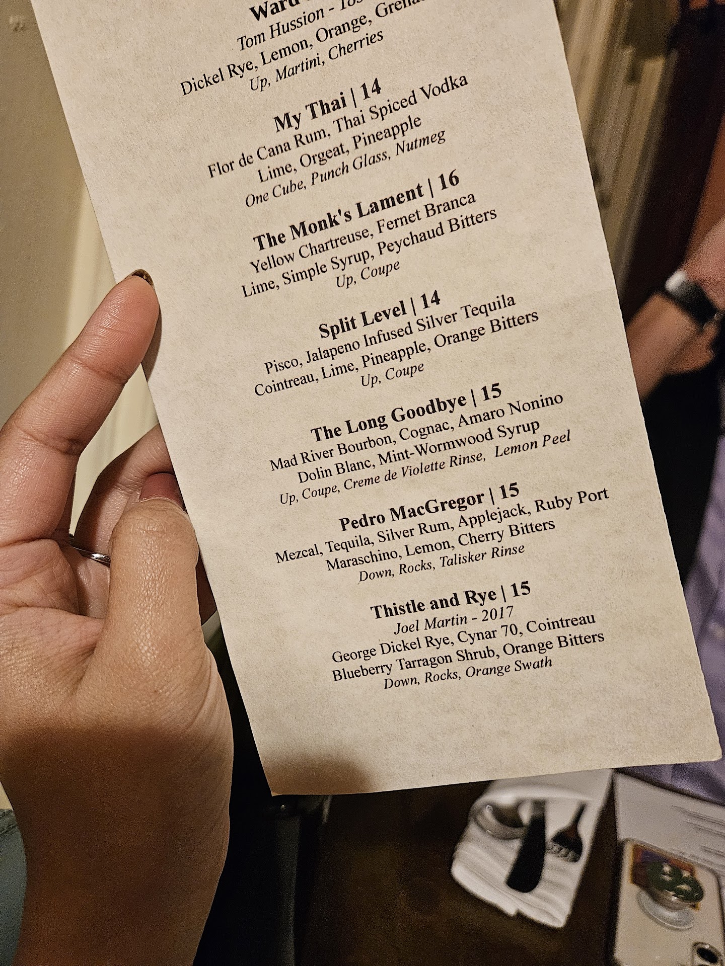 Morgan was wonderful, and we ended up chatting quite a bit, which made the experience even more special. When it came to cocktails, I was craving bourbon and chose The Long Goodbye - ironically fitting, as I was leaving the area after half a decade. It was beautifully balanced and hit just the right notes for the spring season.