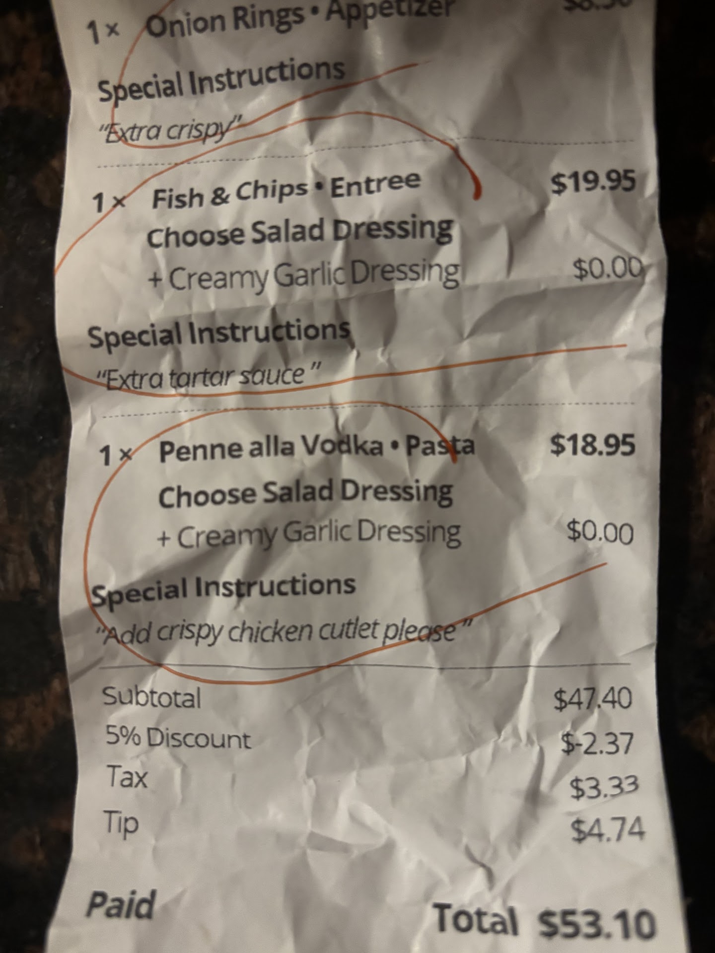 Read moreWent in with my boyfriend and immediately had to walk over a pile of dirt on the floor which would've been fine if it was being cleaned but the staff was just standing there chit chatting with their phones out. The manager was maaaaaad but he sat us down and instead of putting us in a nice area you would want to sit a couple on a date we got put right next to the bar where there was 4 obnoxious people drinking. We still kept trying to make the best of it. Our waitress ignored us most of the night, even got the people who showed up 20 minutes after us all paid out and ready to leave 20 minutes before finally waking us about our check. The food was good. DON'T EVER ORDER A HOUSE SALAD!! We couldn't even believe they brought us what they did and called it a salad! Nothing but lettuce, topped with roasted red peppers (weird and not what goes on a house salad) with 1 slice of cucumber and literally A HALF of a grape tomato!! You know how Tony a GRAPE TOMATO IS?!!? I got 1 half and he got the other 🤣 The garlic bread looked great but was pretty dry. My chicken parmesan was pretty good but definitely would've been 100x better if it arrived hot and fresh. Instead the noodles were ice cold and chicken was just warm when it arrived. His shrimp and noodles had way too much sauce he said but was pretty tasty and it took forrrrrever just to get a refill on his soda. The busboy was on point tho! He cleared our table, taking our plates and checking on us. He should've been our server!! It's a nice place and fair prices and we made it a great night just being out together but not the best experience for our first date...