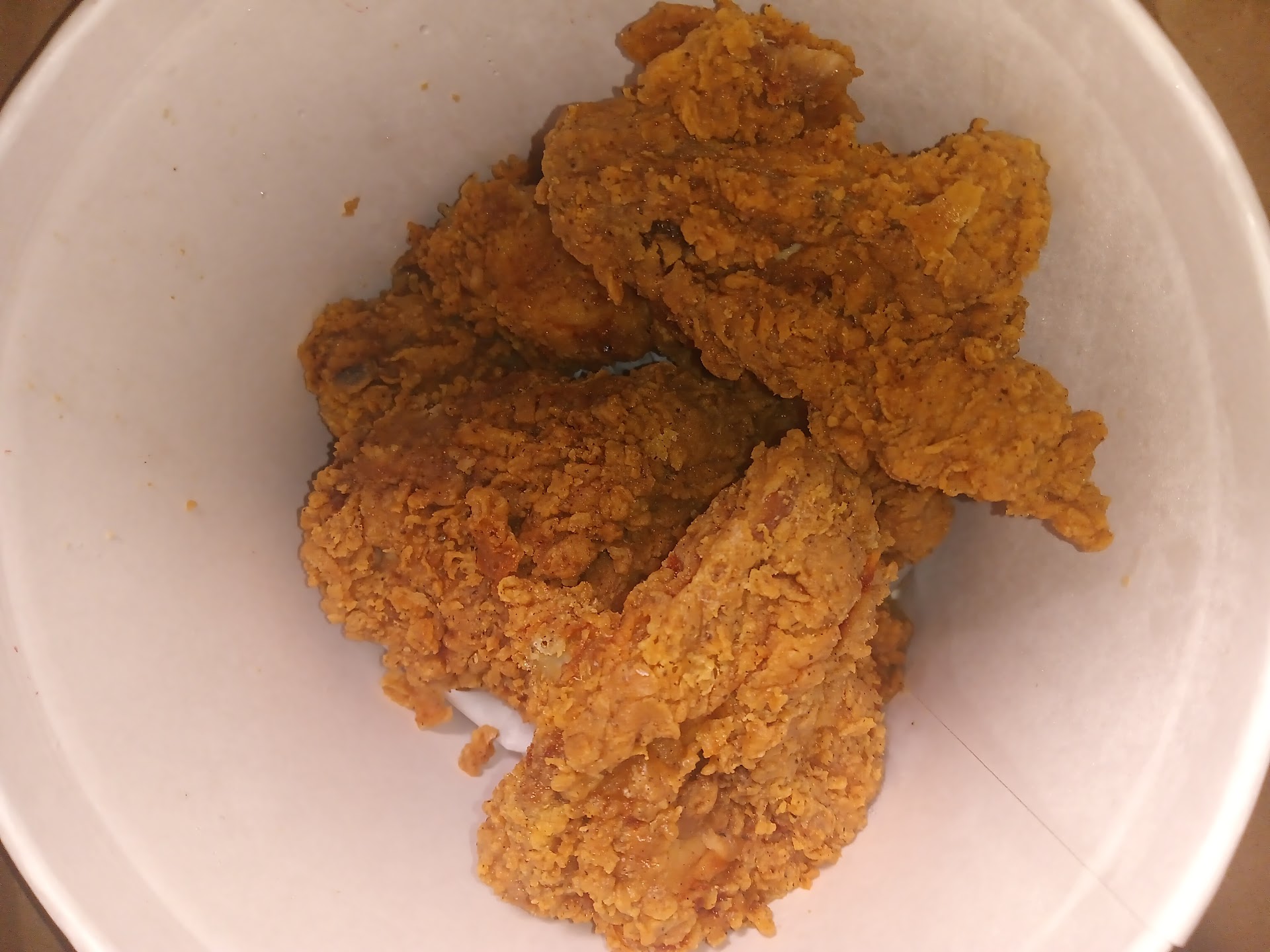 Read moreWent there earlier today with my grandmother. She ordered two chicken wings (I think) with mashed potatoes w/ gravy and coleslaw while I ordered a popcorn chicken with potato fries and barbeque sauce. Once we got our food immediately we noticed it was wrong and my grandmother pointed it out to the worker who put our food together and the cashier, keep in mind that everything I said above for our meals was on the receipt and the order screen the workers look at. What was on the tray was a meal similar to what my grandmother ordered but her coleslaw was with my meal which had only popcorn, no potato fries, and the coleslaw. The worker threw away my popcorn chicken and took the coleslaw replacing both with potato fries which my grandmother resolved a second later by telling him my meal came with both potato fries and popcorn chicken. I get that my grandmother might've been giving the worker a hard time but what happened after was not acceptable. He almost took the mashed potatoes w/ gravy but my grandmother told him it was apart of her meal (which it was) and he threw it down on the tray, same with the coleslaw a bit later. Once sitting down my meal was fine but my grandmothers wasn't the best, the mashed potatoes w/ gravy were lukewarm, one of her chicken wings were dry, and the other chicken wing was not...
