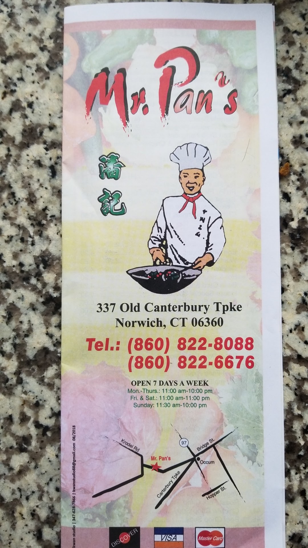 Here I am again, waiting for D9, and my wife's lo mein and rangoon. We're not doing so good these days, but who is? I hope the Mr. Pan's people are, I hope their kids are blossoming into healthy and successful adults. I'm glad there are so many different cultures in this country and that American Chinese food, whatever distant relation it bears to the eight great cuisines of China - Shandong, Hunan, Sichuan, Cantonese, Jiangsu, Zhejiang, Fujian, Anhui - is so common as to be unremarkable. But here I am, remarking. The food...