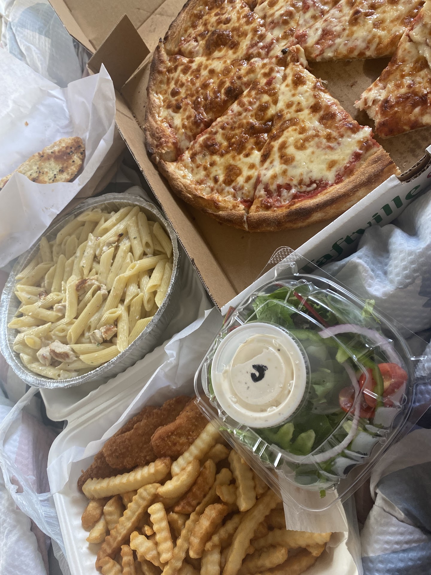 Read moreThis is the third time we try because is the closest place to our home and it is said that âthird time is a charmâ but NEVER again! Is a total disappointment EVERY TIME and a waste of our hard worked money. We simply wanted a nice family meal and spend it at home with our daughter and as a birthday gift she wanted pizza. They were really nice on the phone and even helped with a coupon that wouldnât go through when online ordering. It was our first time ordering with a coupon there. We got a large family meal. But sadly to say that the pizza was soggy, the appetizer we chose was tenders with French fries and the fries were salty and soggy as well. We also got a Chicken Alfredo Italian dinner which was a great amount but the pasta was very dry and had no Alfredo sauce and it had no type of taste. It even seemed like they forgot to add the sauce to begin with. The side salad had some bad lettuce and huge pieces of onions and peppers. They also forgot my daughterâs honey mustard for her tenders. I swear the only good thing that had good taste was the tenders out of EVERYTHING we got. I want to cryđ˘ How many mistakes can you make on just ONE persons order? Will NEVER happen again!!! My daughter was not having it and I feel so bad. We are so disappointed!!! Iâm tired of calling them every time we order for them to fix it and then expect us to go and pick it up when we had delivery in the first place and gave tip. Itâs not fair that people get this type of service just because they decide to be messy and lazy. If you want great tasting food, good service and great quality PLEASE DO NOT SPEND YOUR HARD...
