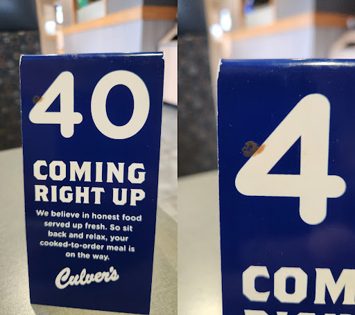 The only negative regarding this particular Culver's is if you have to wait for your food, to be made fresh, the spots in the parking lot where you wait are very awkward. They tell you which numbered spot to pull into, but it is not a well-designed area to wait for your food (or frozen custard).